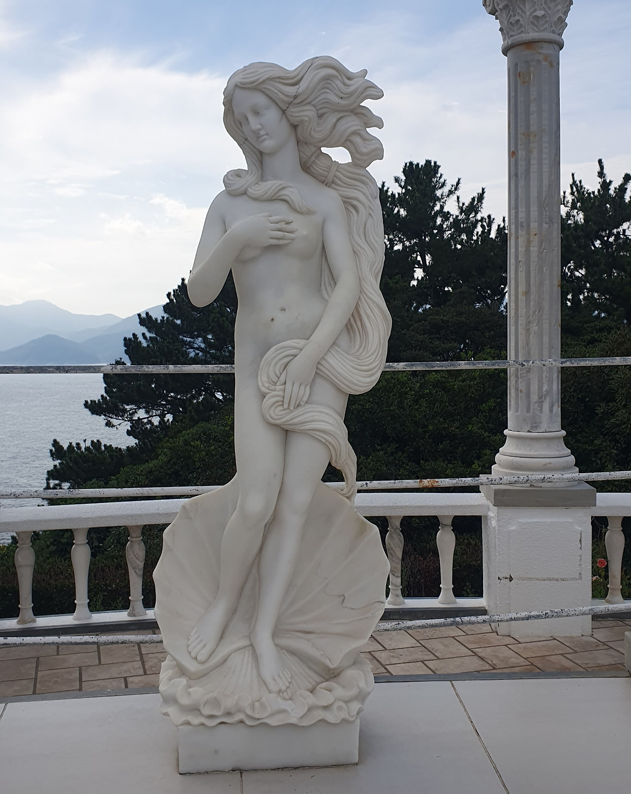 해금강 십여분 거리의 외도에 들어서자 전혀 다른 세상이 펼쳐졌다. 푸른 남해를 배경으로 펼쳐진 정원은 계절의 꽃과 나무로 가득했고, 지중해풍 건물들과 대리석 조각품들이 마치 동화 속 무대를 옮겨 놓은 듯 어우러져 있었다. 무더위 속에서 길게 느껴질 줄 알았던 2시간은 오히려 너무 짧았다. 걷는 길마다 탄성이 흘러나왔고, 어느새 나는 시간마저 잊고 있었다.