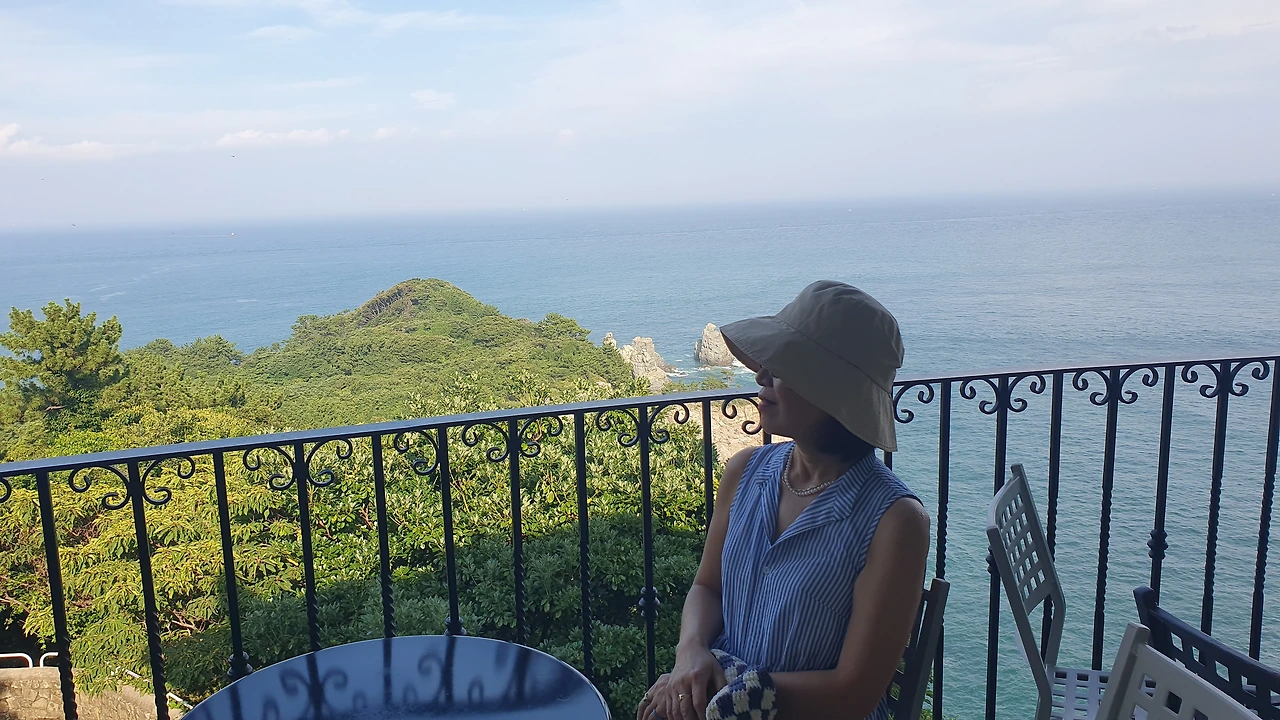한여름이 아니라면, 테라스에 나가 커피 한 잔 시켜놓고, 싱그러운 바람이 불어오고, 파도의 호흡이 음악처럼 이어지는 자리에서, 그저 수평선 너머 펼쳐진 파란 세상만 바라보다가 시간이 멈추어도 좋으리를 읊조리고 싶다.