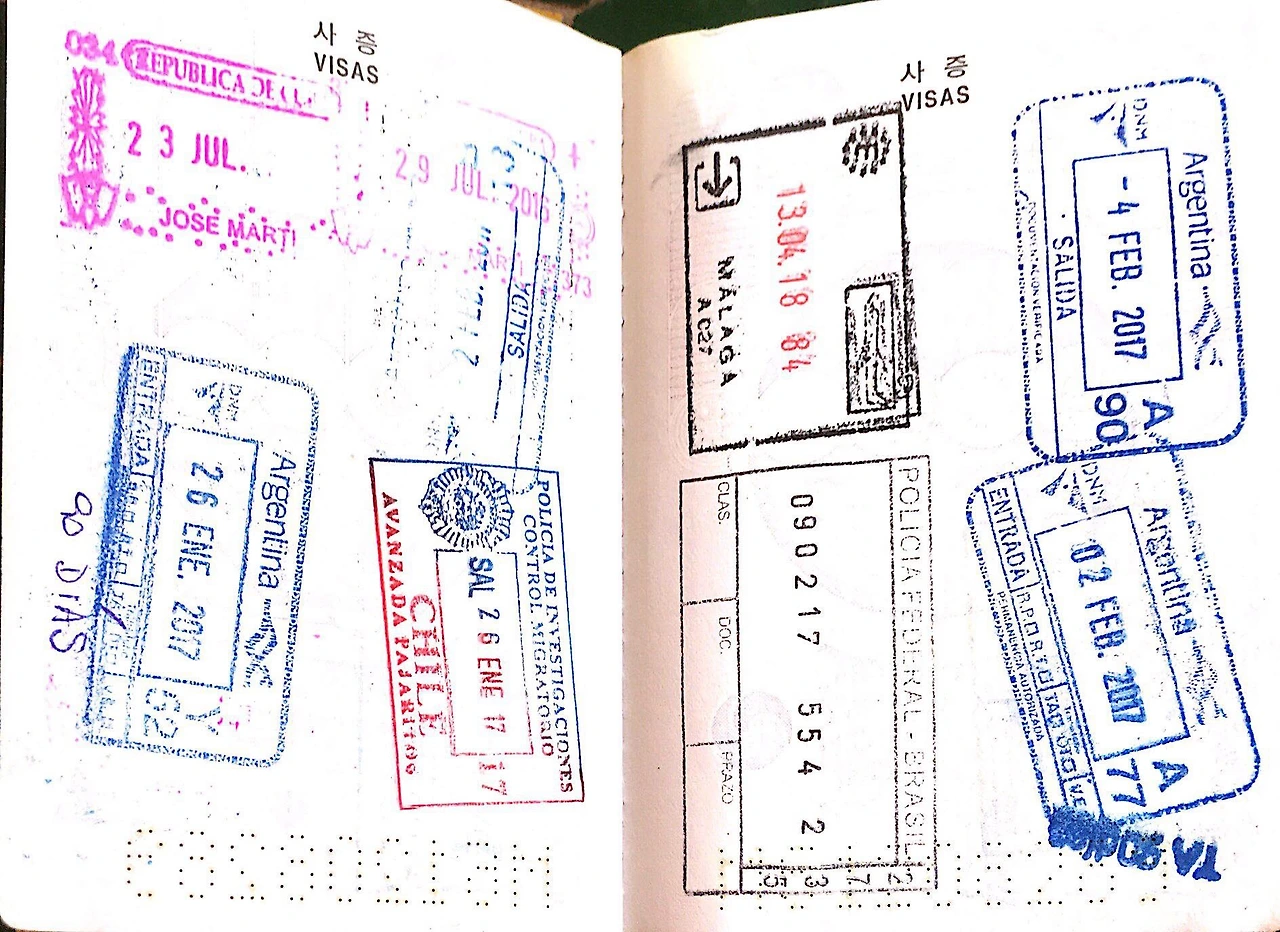 그 밑은 칠레 출국도장이 찍혀 있고, 양 페이지에 걸쳐 아르헨티나 입국 도장이 두 번씩 찍혀 있다. 이과수 지역에서 브라질과 아르헨티나 국경을 왔다갔다 해서 도장이 이렇게 찍히게 되었다.
