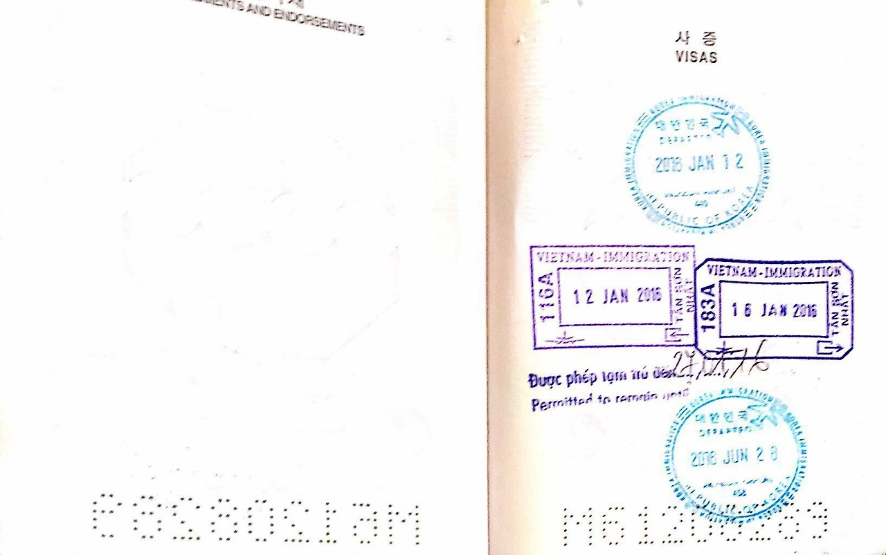 지금은 없어진 대한민국 출국 도장 두 개와 베트남을 입출국한 흔적이 남아 있다.