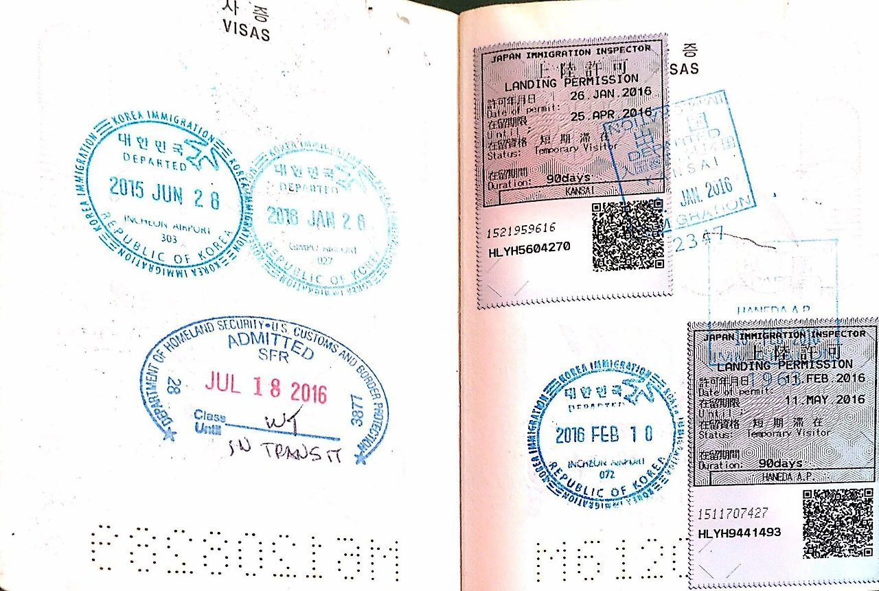 맨 위의 도장은 2016년 1월 12일 인천공항에서 출국하면서 받은 도장이다. 바로 밑의 베트남을 가기 위해 출국한 도장이어서, 베트남 입국 도장에도 같은 날짜가 새겨져 있다.