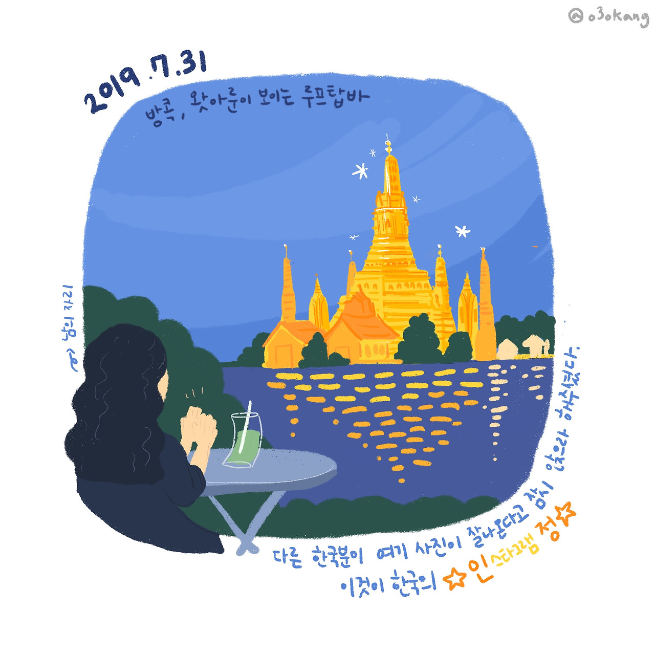 치앙마이에 가기 전 방콕을 경유하는 김에 방콕에서 4일간 여행을 했다. 잠을 못 자 피곤한 상태에 무거운 마음으로 출발했음에도 막상 방콕에 도착해서는 여느 해외여행처럼 즐겁게 보낼 수 있었다. 방콕은 100% 여행하는 곳으로 정해뒀기에 그럴 수 있었던 것 같다. 시간과 비용이 더 들더라도 본격적인 해외살이 전에 잠시나마 여행하는 시간을 둔 건 잘한 일이었다. 좋은 호텔과 수영장, 맛집과 이국적인 여행지. 한국의 푹푹 찌는 무더위 보다야 비도 간간히 내려 선선하고 쾌적한 날씨. 여행 기간 동안은 옷도 예쁜 관광용 옷을 골라 입고, 화장하고, 사진도 많이 찍어가며 즐겼다. 이 방콕에서의 짧은 여행은 출국할 때 따라붙은 우울감을 설렘으로 바꿔주는 계기가 되었다.