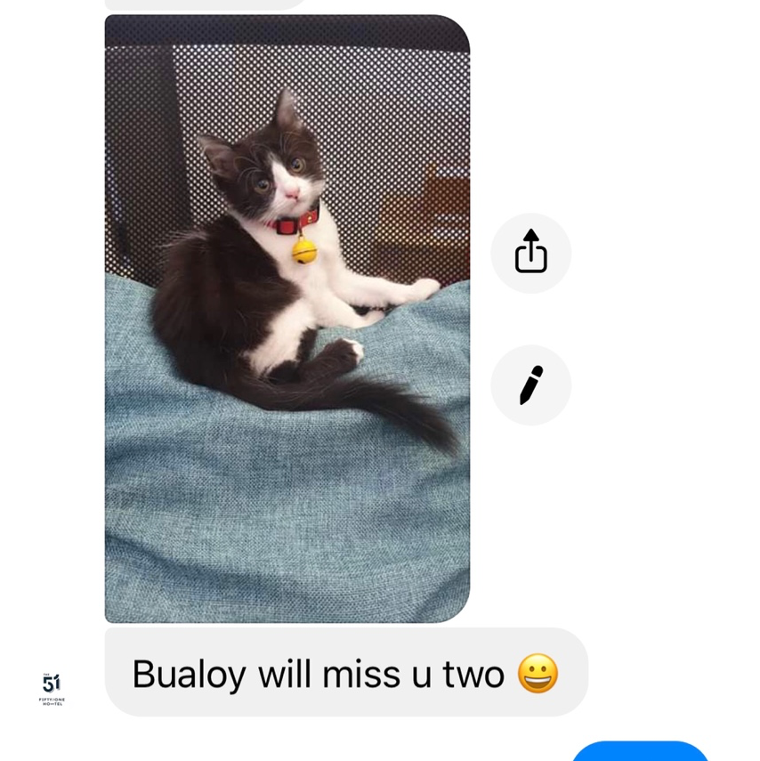 매일 오가며 질척거렸더니 숙소 스태프들에게 고양이 덕후로 유명해졌나 보다. 로비에서 두리번거리면 스태프들이 웃으면서 고양이 위치를 손가락으로 가르켜주곤 했다. 마지막 날을 앞두고 체크아웃에 관한 질문을 페이스북 메신저로 물었을 때도, 스탭은 다음에 다시 방문하라며 고양이 사진을 보내줬다. (내가 뭐에 유혹되는지 너무 잘 알고 있는 것...)