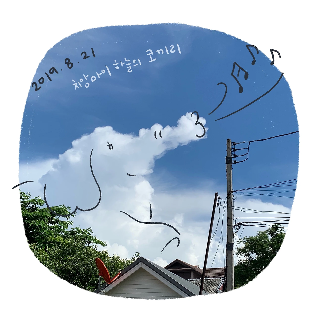 구름, 하늘 덕후로서 치앙마이는 구름 구경이 너무 재미있는 도시이다. 한국에서 미세먼지에 파란 하늘과 구름을 본지 오래되었는데, 치앙마이에 오니 구름이 뚜렷이 보일 뿐 아니라 왠지 더 가깝고(?) 모양이 버라이어티 해서(?) 매일 하늘 보는 시간을 10분 이상은 갖게 되었다. 마침 내가 있는 기간이 우기여서 그런지, 치앙마이가 대지가 높아서 원래 그런 건지 예송 한(예체능 전공이라 죄송합니다) 나로서는 알 수 없지만.
