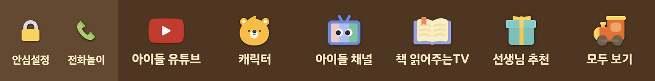 : 실제로 서비스에 교육 콘텐츠와 안전장치가 있으면 더욱 좋지만, UI 디자인에서도 교육적이고 안전한 느낌을 줄 수 있다. 사과/바나나 그림이 있거나 알파벳으로 꾸며져 있는 것만으로도 키즈에겐 교육이 될 수 있다. 하다못해 칠판이나 책 그래픽으로 꾸며주는 것만으로도 부모들은 교육적인 느낌을 받는다. 어른들이 사용하는 인터페이스와 시각적으로 분리되어 보이는 것도 부모들이 '안전한 환경에 진입했구나' 느끼게 만들어준다. 여기서 어른용 인터페이스로 빠져나갈 때 이를 막아주는 몇 장치를 더해주면 더 좋다.