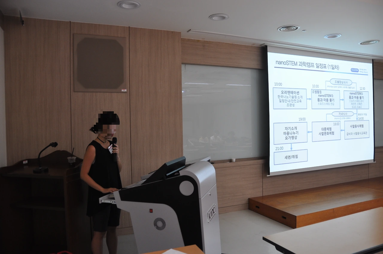 들어가 보니 총 봉사단원이 100명이 넘는 큰 단체였고 10명 정도씩 조를 나눠 활동을 하는 구조였는데, 주기적으로 기술원에 방문해 박사님께 나노 기술에 관한 수업과 봉사 관련 교육을 받고 배운 내용을 토대로 그 지역 초/중/고등학교 방과 후 선생님으로 투입되는 시스템이었다. 때문에 평소에는 조 사람들과만 교류를 했지만 한 달에 몇 번씩은 기술원에서 다른 조 사람들을 만났는데 그렇다 해도 워낙 큰 단체였다 보니 한 명 한 명과 알아갈 기회는 적었다.