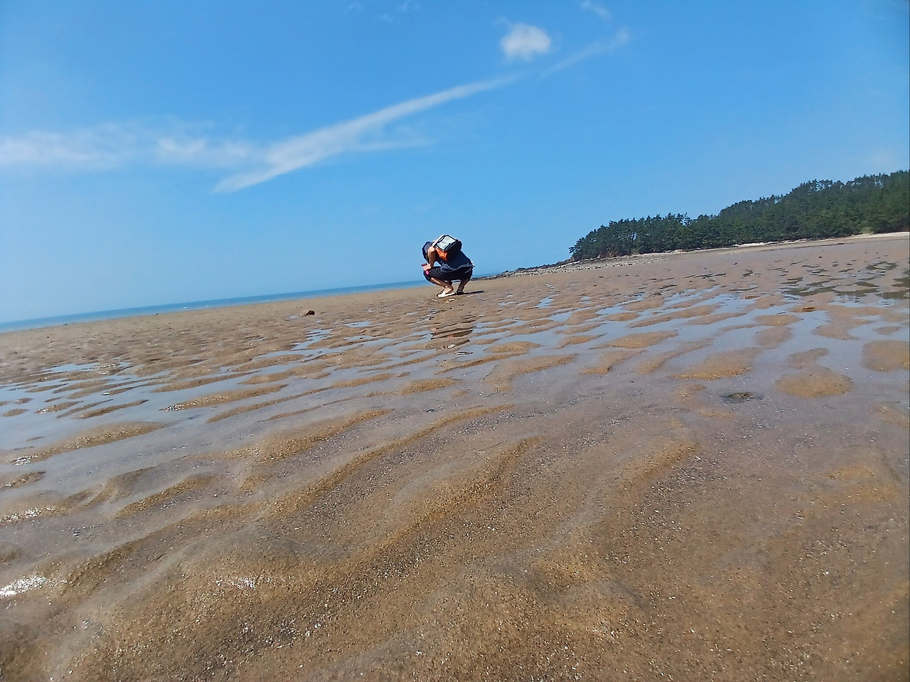 물이 빠지자 옆지기가 호미를 들고 해루질에 나선다.