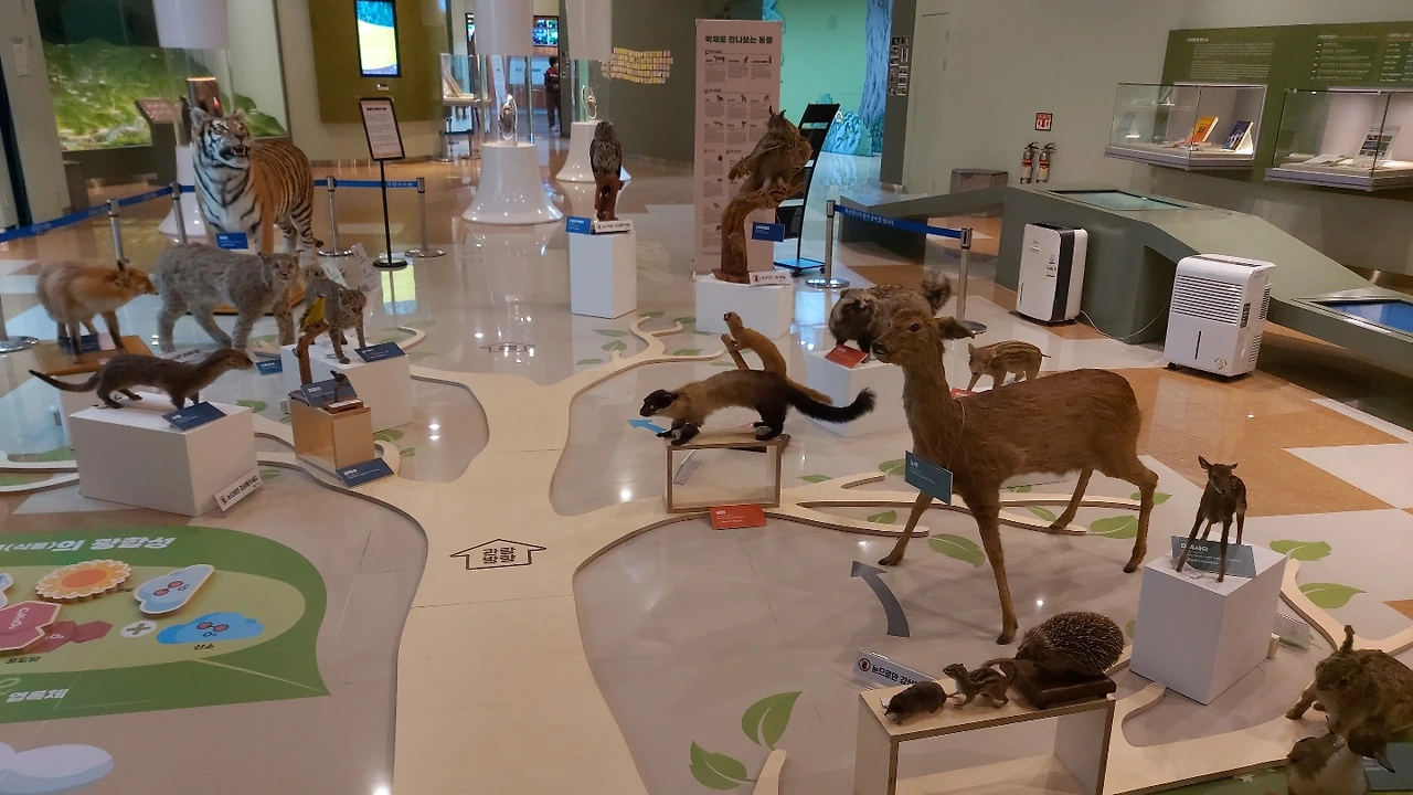 박물관 2층에서 '먹이 사슬로 보는 동물의 세계'를 전시하고 있었다. 광릉숲에서 서식하는 동물 박제 전시다. 특히 호랑이 박제는 2005년 후진타오 중국 국가주석이 방한하면서 기증한 백두산 호랑이 '압록이'가 자연사하자 이를 박제한 것이다. 압록이는 국립수목원 산림동물원에서 사육되었다. 이 전시는 9월 30일까지 이어진다.