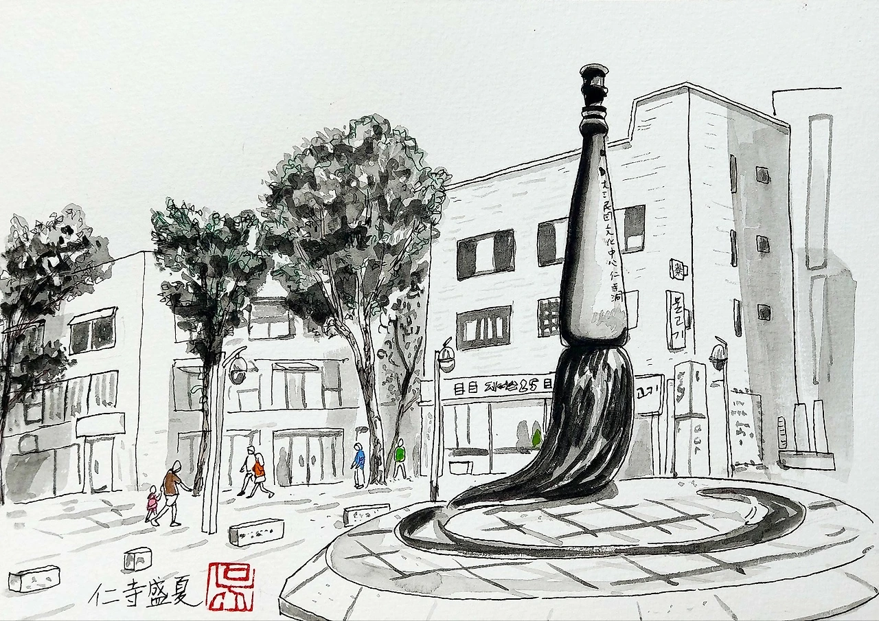 인사동 입구의 붓 조형물 '일획을 긋다'를 그렸다
