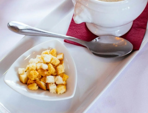 * Crouton (크루통) : 우리가 흔히 고명에서 보게 되는 빵조각인데요. 이걸 말하는 겁니다 ^^