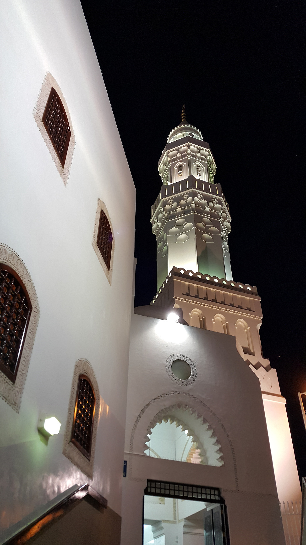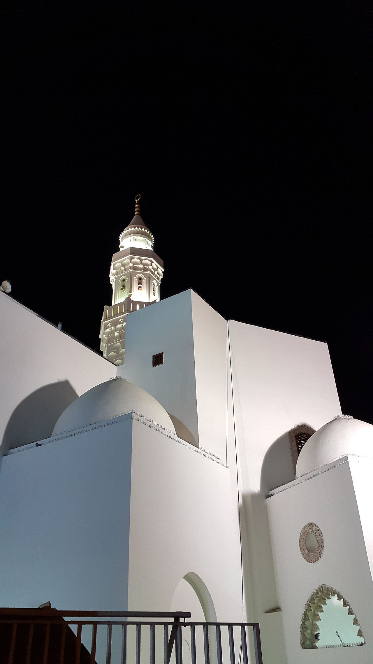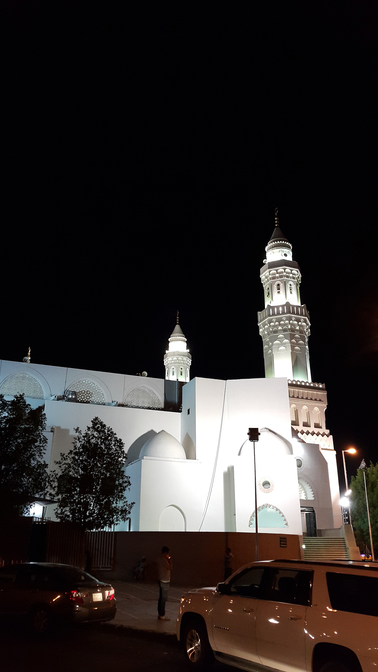 메카에서의 박해를 피해 '헤지라' 당시 처음 야스립의 초입에 들어서던 예언자의 소회는 어떠하였을까? 이런 생각으로 잠깐 상념에 잠기다 링로드를 빠져나오자 대추야자 숲이 우거진 인근 '쿠바아'모스크의 둥근 돔들이 눈에 들어왔다. 쿠바아 모스크는 예언자가 야스립에서 처음 기도를 드렸던 곳으로 이 곳에서의 한번 기도가 '우므라'와 같은 의미를 지녔다고 하는 알 마디나 3대 모스크 중 한 곳이다. 석양을 배경으로 하얗게 반짝거리는 모스크에는 들고 나는 무슬림들의 발걸음이 무척 분주했다.