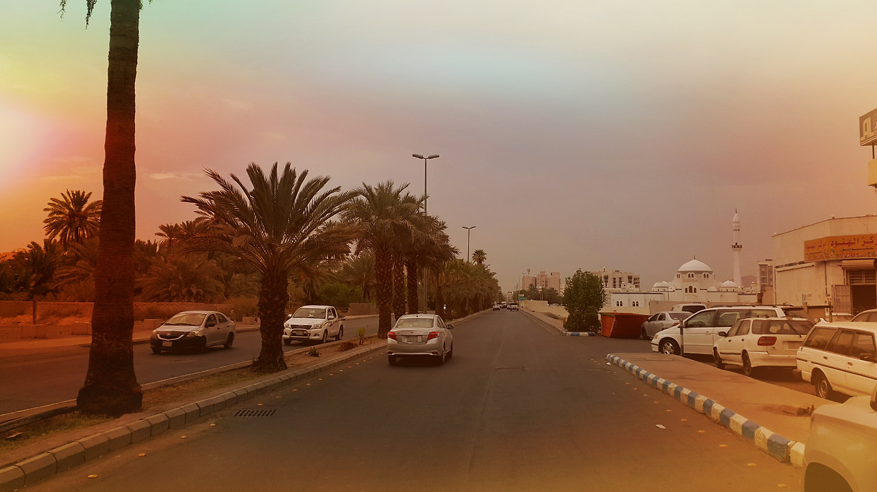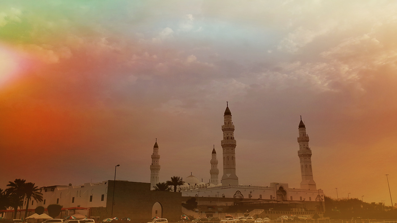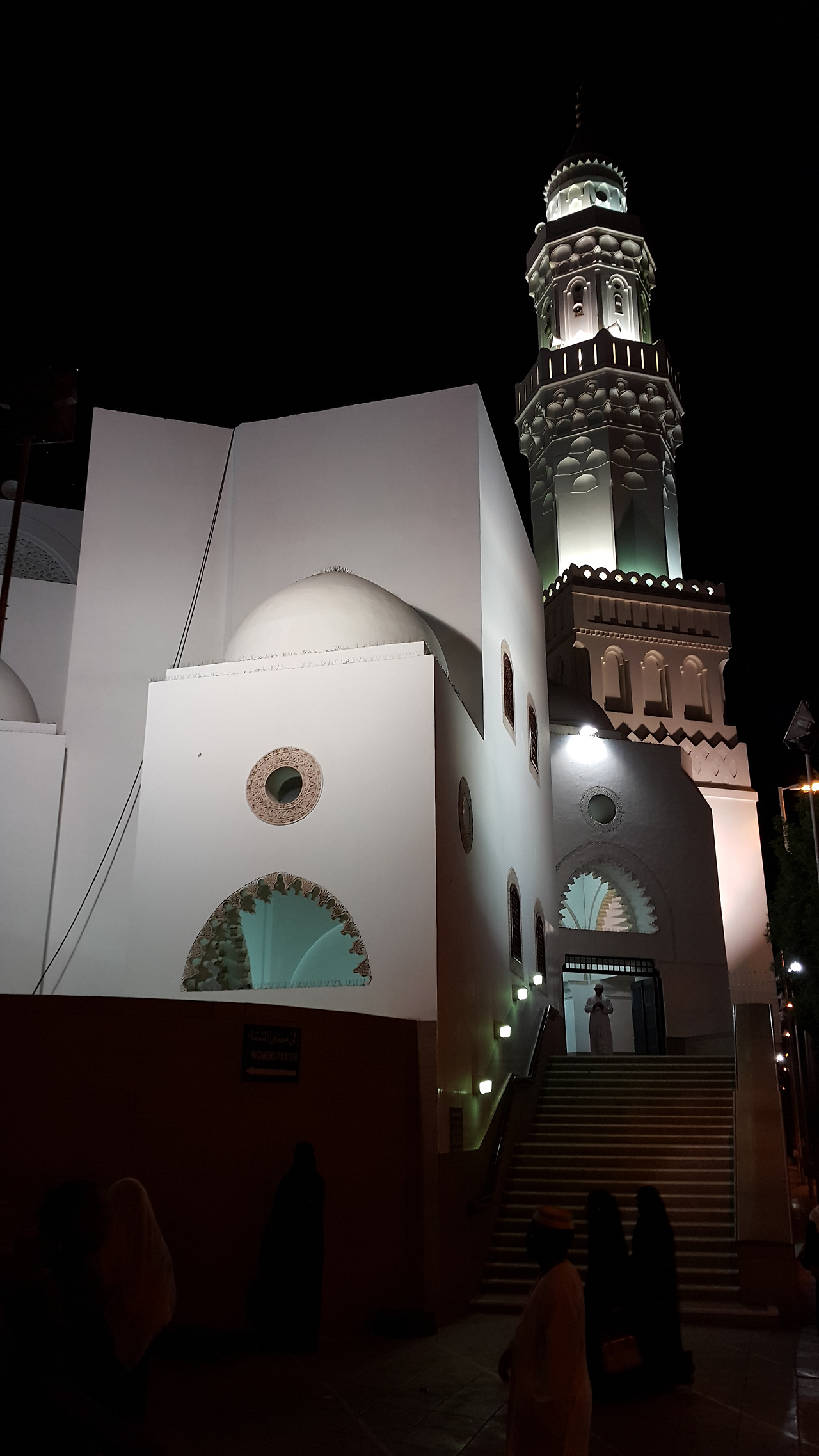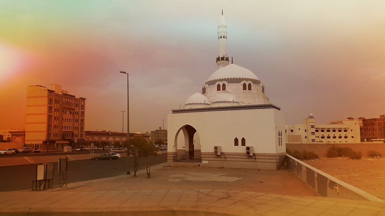 메카에서의 박해를 피해 '헤지라' 당시 처음 야스립의 초입에 들어서던 예언자의 소회는 어떠하였을까? 이런 생각으로 잠깐 상념에 잠기다 링로드를 빠져나오자 대추야자 숲이 우거진 인근 '쿠바아'모스크의 둥근 돔들이 눈에 들어왔다. 쿠바아 모스크는 예언자가 야스립에서 처음 기도를 드렸던 곳으로 이 곳에서의 한번 기도가 '우므라'와 같은 의미를 지녔다고 하는 알 마디나 3대 모스크 중 한 곳이다. 석양을 배경으로 하얗게 반짝거리는 모스크에는 들고 나는 무슬림들의 발걸음이 무척 분주했다.