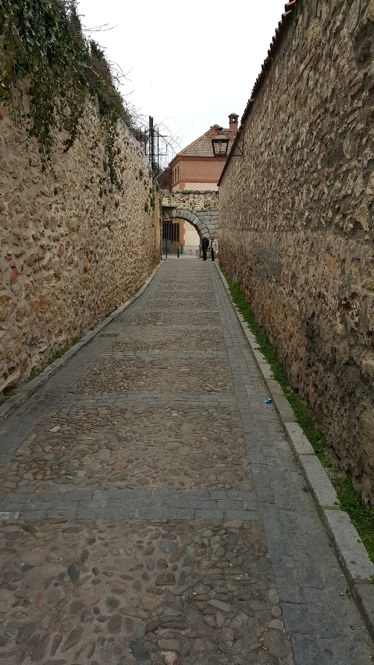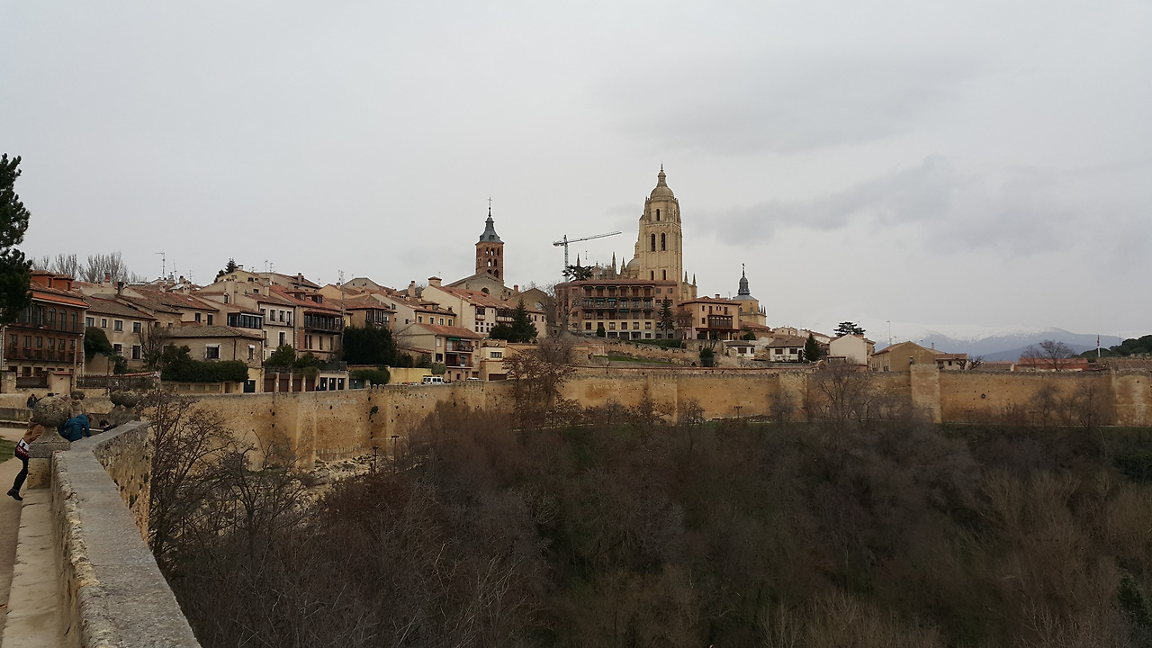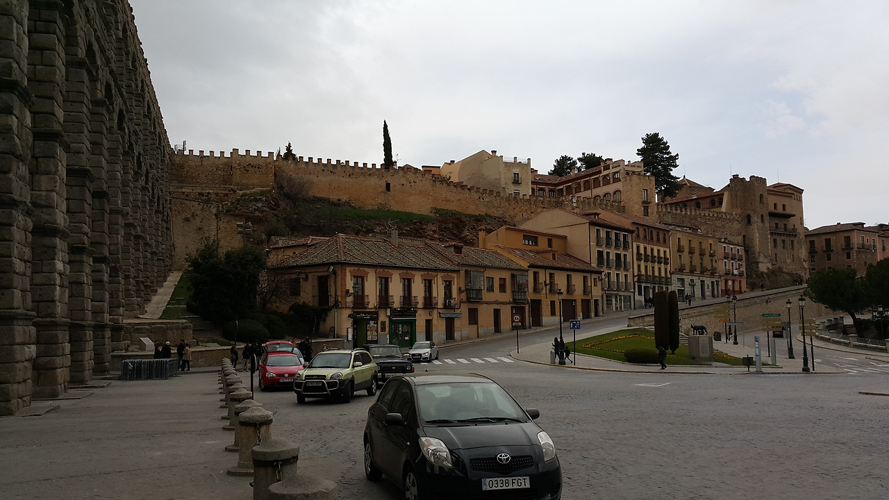고즈넉한 옛 도시의 초입에서 '알까사르'로 올라가는 계단을 발견했다. 관광객으로 보이는 사람들이 사진을 여기저기서 찍고 있었다. 로마시대 수도교와 알까사르는 보고 가야지 하는 마음으로 이정표가 가르키는 방향으로 발걸음을 향했다. 구불구불하게 이리저리 연결된 좁은 골목으로 차들과 행인들이 불편하게 공존하는 길을 피해 뒷골목을 발견해 내고 그것을 이용했다. 높은 성벽을 따라 세고비아 외곽의 전경이 한 눈에 들어왔다. 왠지 내 눈에는 그것들이 쓸쓸해 보였다. 하늘이 흐리고 낮아 보여서 였을까?