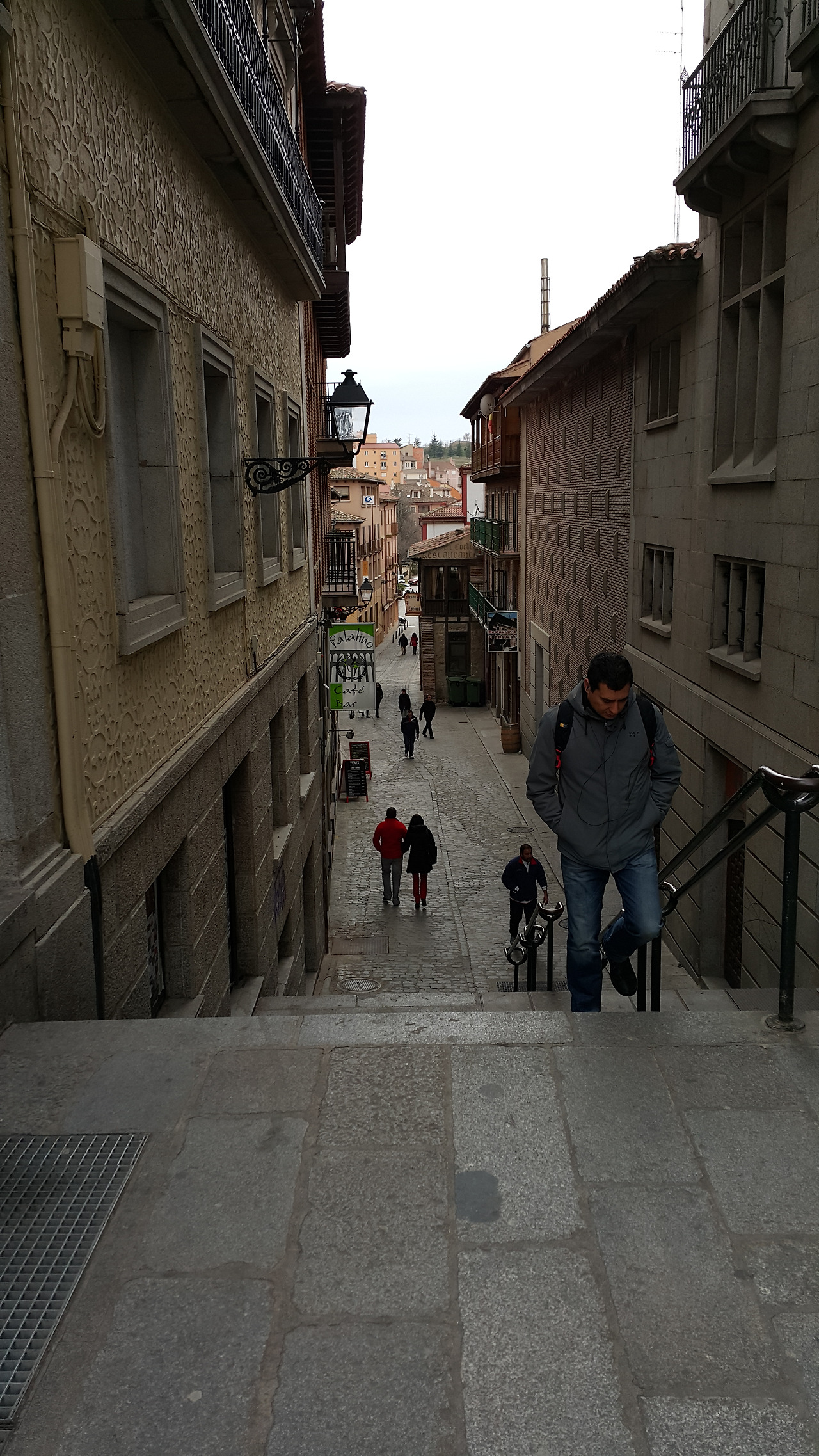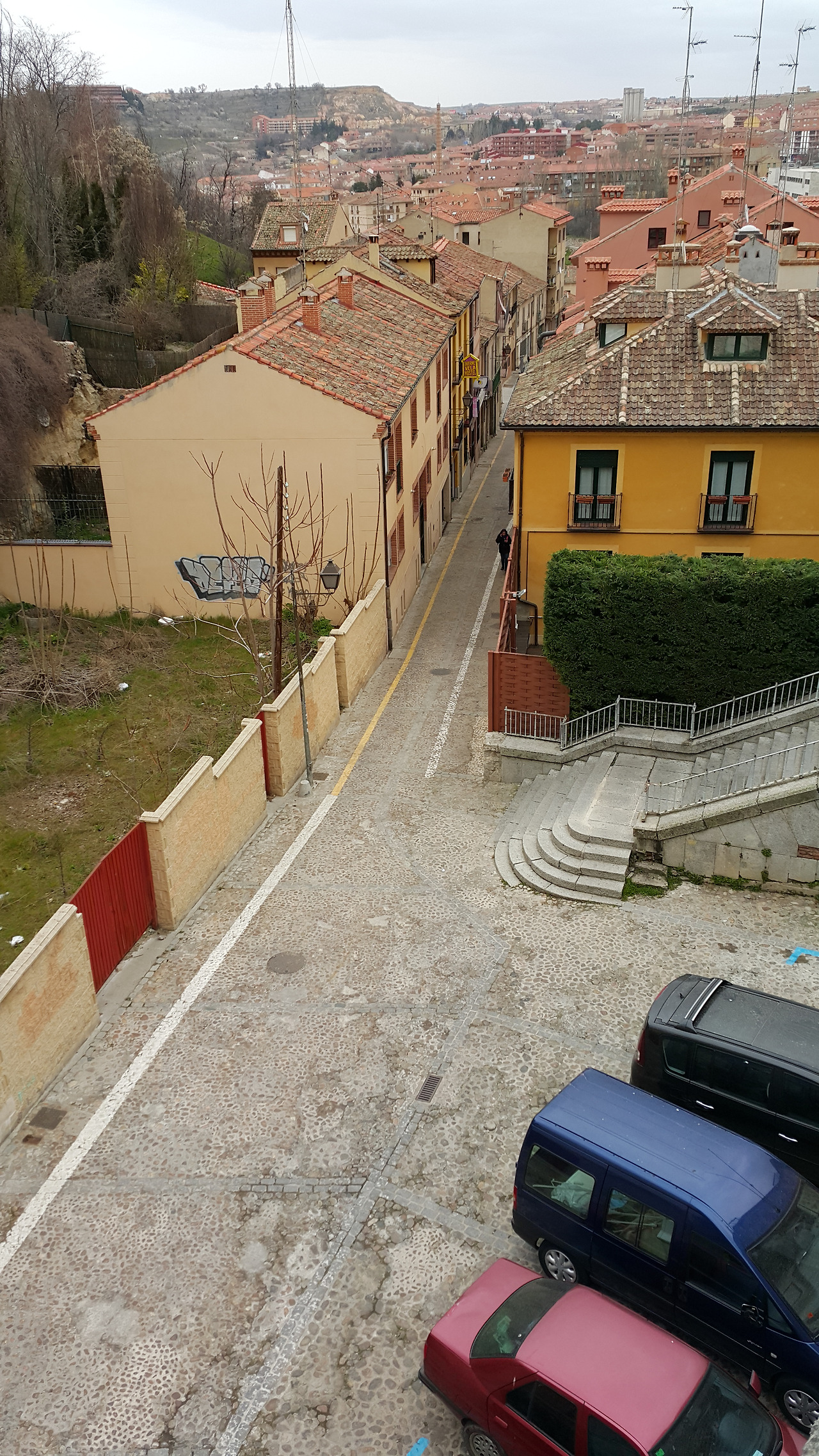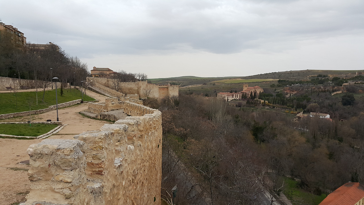 고즈넉한 옛 도시의 초입에서 '알까사르'로 올라가는 계단을 발견했다. 관광객으로 보이는 사람들이 사진을 여기저기서 찍고 있었다. 로마시대 수도교와 알까사르는 보고 가야지 하는 마음으로 이정표가 가르키는 방향으로 발걸음을 향했다. 구불구불하게 이리저리 연결된 좁은 골목으로 차들과 행인들이 불편하게 공존하는 길을 피해 뒷골목을 발견해 내고 그것을 이용했다. 높은 성벽을 따라 세고비아 외곽의 전경이 한 눈에 들어왔다. 왠지 내 눈에는 그것들이 쓸쓸해 보였다. 하늘이 흐리고 낮아 보여서 였을까?