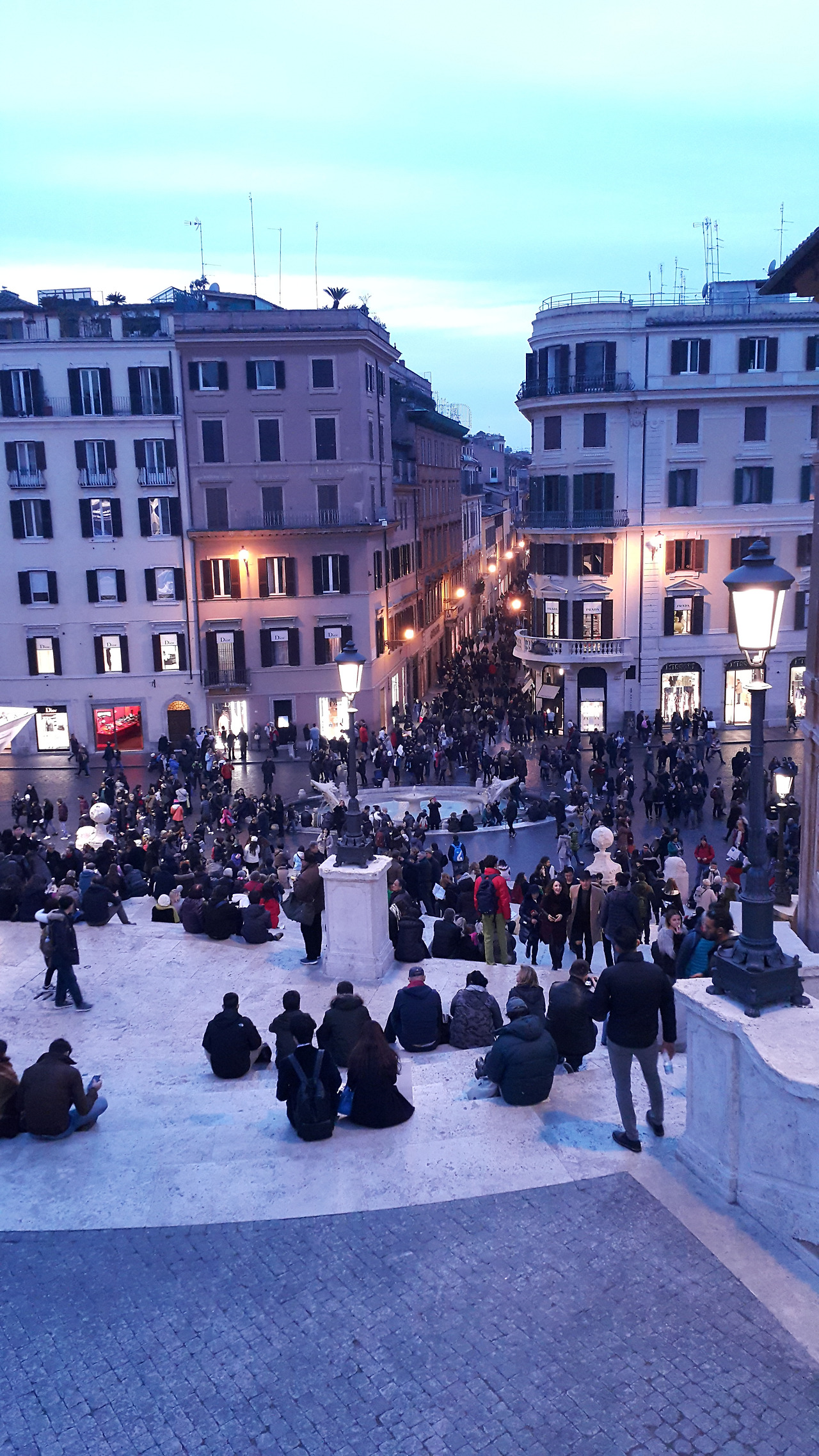 스페인 광장의 계단을 천천히 걸어 올라 아래를 지긋이 내려다보았다. 아이스크림 하나를 손에 들고 일상에서의 일탈을 꿈꾸던 철부지 앤 공주와 그의 주변을 서성이고 있던 신문사 기자 조 브래들리는 어디쯤 앉아 있었을까? 그 장면을 보기 위해 '로마의 휴일'이라는 그 영화를 몇 번이나 보고 또 보았던가? 이런저런 생각으로 잠시 동안 계단에 주저앉아 영화 속 몇 장면을 계속 떠 올리며 시간을 보냈다. 어둠이 내려앉으면서 하나둘씩 광장 인근에 조명이 밝아왔다.