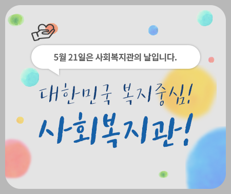 다가오는 5월 21일 ‘사회복지관의 날’을 앞두고 사회복지관에서 일하는 사회복지사로서 많은 생각이 든다. 특히나 지금처럼 스마트복지관의 정체성을 고민하고 있는 시점에서 이번 사회복지관의 날은 더 큰 의미로 다가온다. 사회복지관의 날이 늘 상 해오던 관행에 비추어 우리만 아는 끼리끼리의 자축하는 날이 되면 안 될 것이다. 이러한 기념일을 계기로 평소에는 생각하지 못했던 것들을 서로 공유하고 새로운 변화를 모색하고 모두에게 선포하는 날로 기억되길 희망한다. 필자도 사회복지관이 ‘대한민국 사회복지의 중심’이라고 믿어 의심치 않는다.