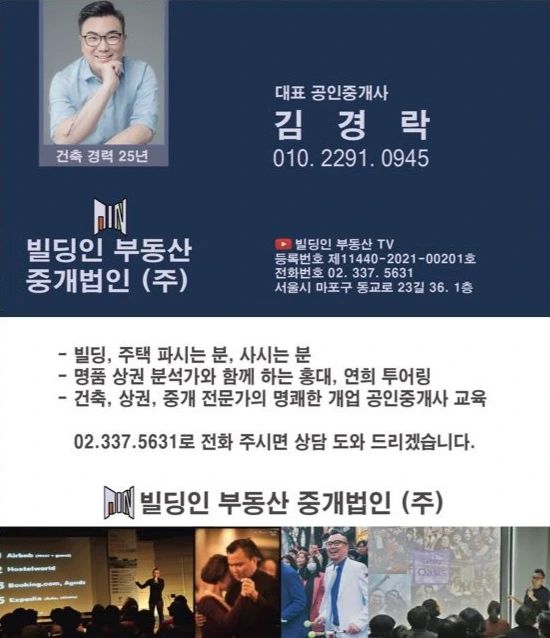 25년 건축 경력의 [명품 상권분석가] 대표 공인중개사 김경락 010 2291 0945 유튜브 : 빌딩인 부동산 TV www.buildinginkorea.com