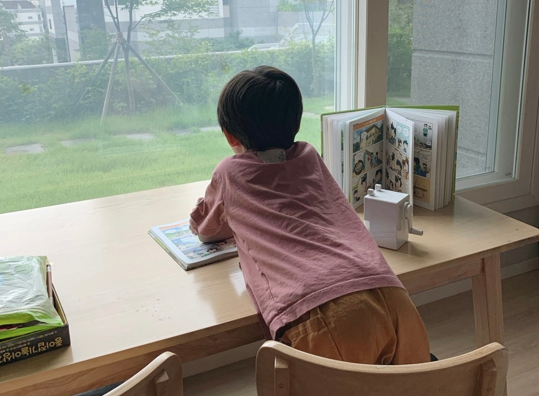 그렇지만 그 공백 기간이 오히려 아이에게는 한글 공부의 꽃을 피우게 된 날들이었다. 1학년 때 학교에서 배웠던 기본적인 한글 교육을 바탕으로 스스로 글씨의 개념을 이해, 조합하는 재미에 빠졌다. 집에서 좋아하는 자연 도감과 책을 읽으면서 글자를 깊이 탐구하였고, 스스로 한글을 떼기 시작했다. 너무 읽어 문자중독이 아닌가 싶을 정도로 책에 파고들었다. 그전에는 아무리 단어카드를 보여주거나 책을 들이밀며 옆에서 읽어주어도, 카드와 책을 낚아채어 도로 있던 자리에 꽂아두는 아이였는데. 몇 시간이고 앉아 책을 읽고 즐기는 모습에 나의 내려놓음과 기다림이 결국 옳았음을 확신했다.