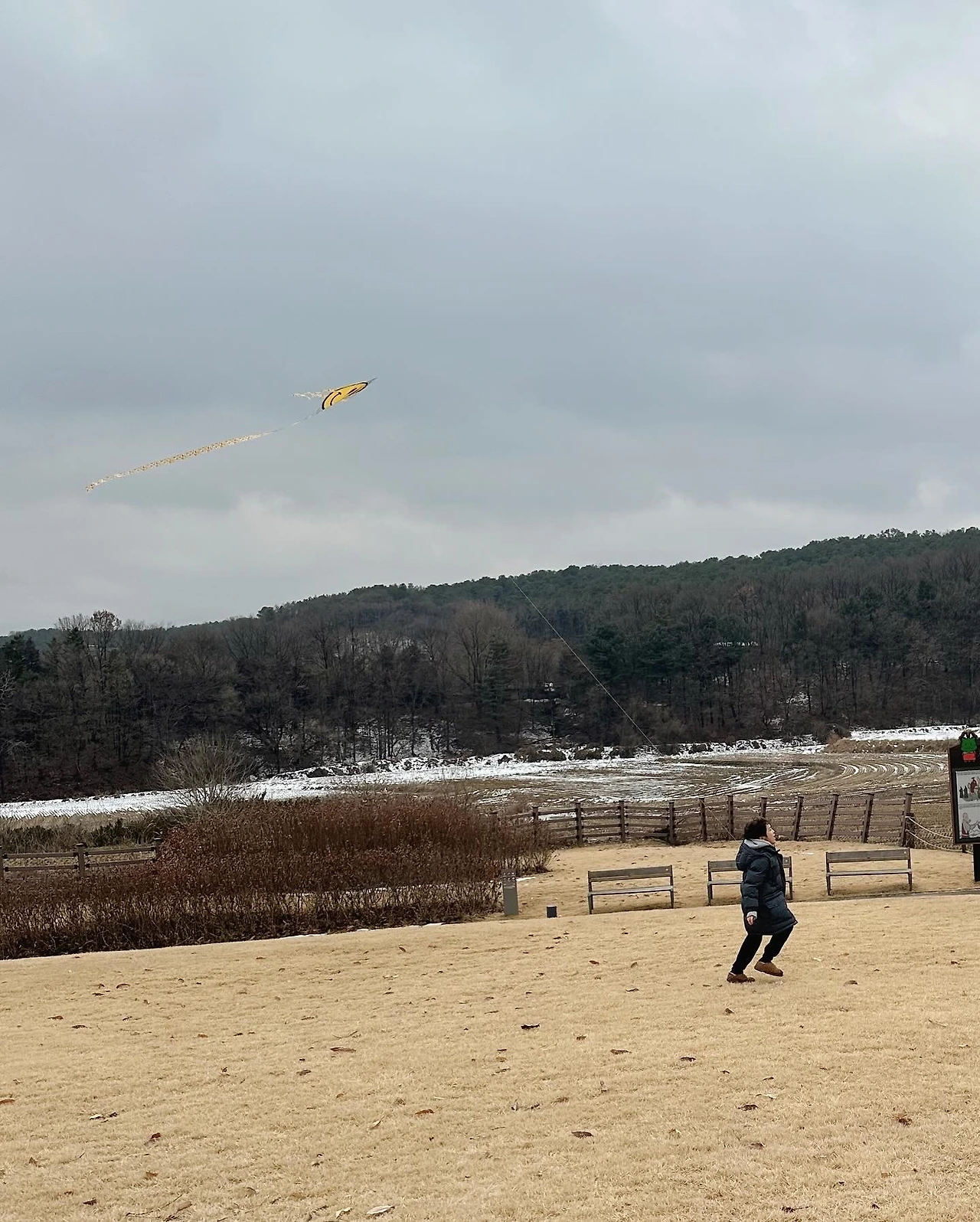 지난 실패를 누구보다도 아쉬워했을 남편. 분명 다음번에는 꼭 성공하겠다는 다짐을 했으리라. 출, 퇴근을 하면서 눈 여겨보아둔 장소가 있단다. 그곳에서 연날리기를 해보자는 제안에 옷을 단단히 여미고 길을 나섰다.
