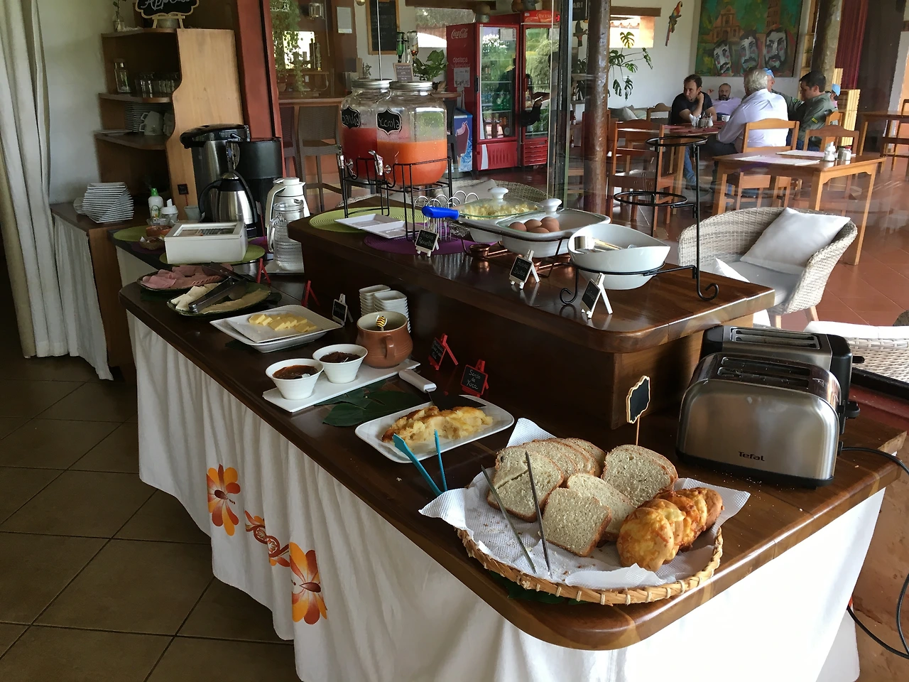 밤이라 잘 보이지 않았는데 아침이 되어 주변을 둘러보니 호텔 담장 뒤로는 병풍처럼 둘러친 산이 보이고, 널찍한 수영장에 뷔페식 아침식사까지 천국이 따로 없었다.