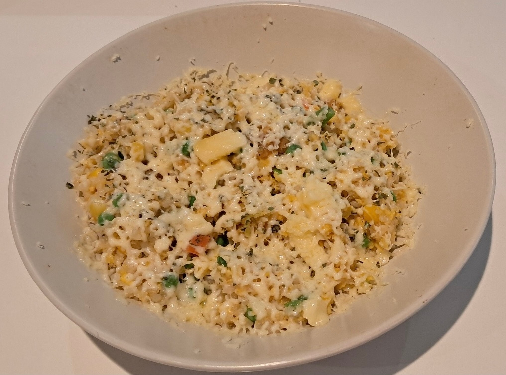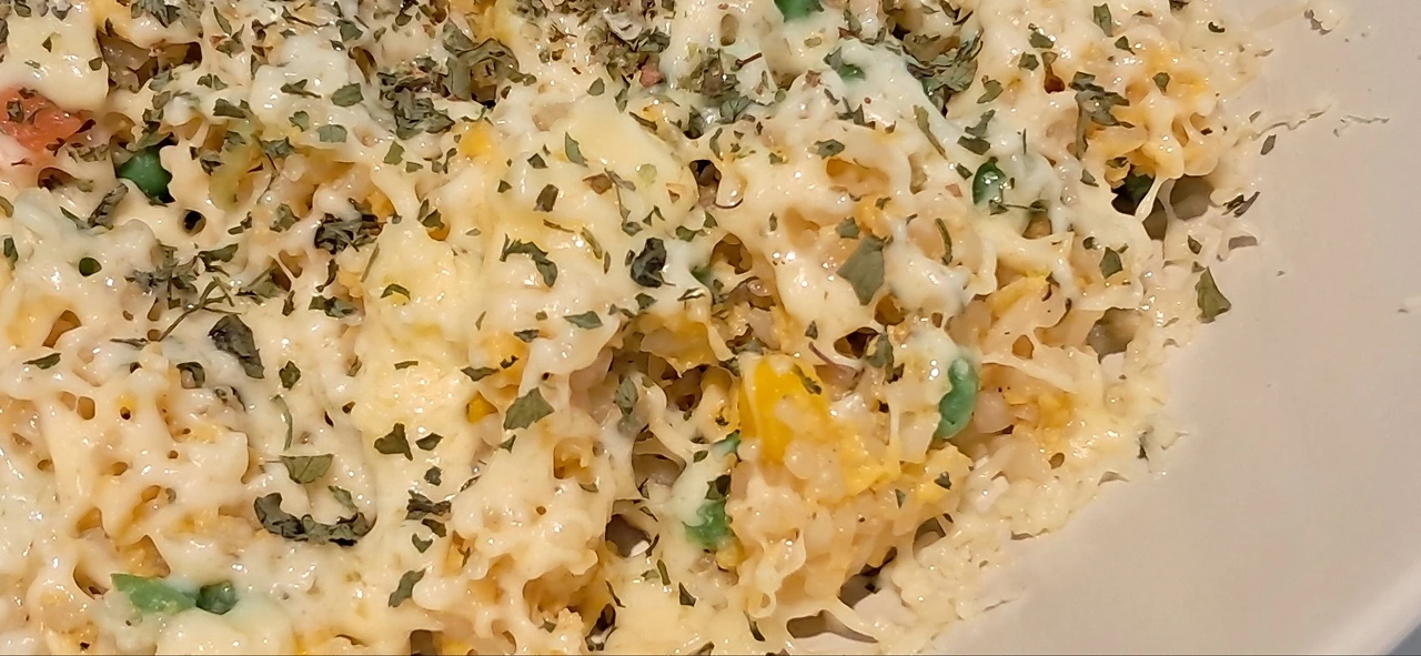 볶음밥에 하얀 눈이 살포시 덮이듯 치즈를 간다. (이건 좀 지나칠 것 같다 생각이 들 정도 듬뿍해야)