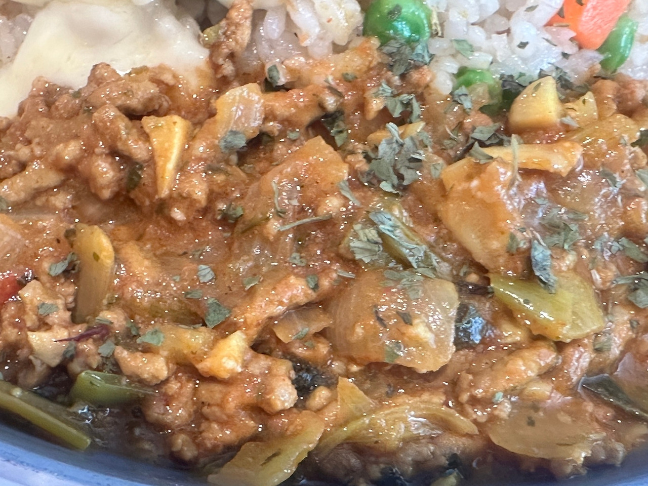 감자, 양파, 소고기로 카레를 만들고, 카레 위에 야채를 얻고, 밥을 데우고, 달걀 오믈렛을 얹어 고수를 뿌리면 끝 아니겠어? 카레는 오뚜기가 있고, 인도풍 느낌을 만들어 내기 위한 curmin(케레의 주재료), turmeric(샛노란 강황), cardamom(중동 디저트에 흔히 들어가는 향기를 배가시키는 향신료), 취향 따라 파프리카, 고춧가루 등을 추가하면 된다.