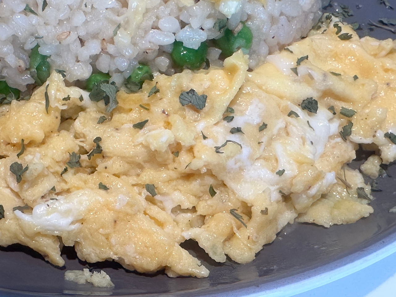 (볶음밥 한쪽에 오믈렛을 담는다.)