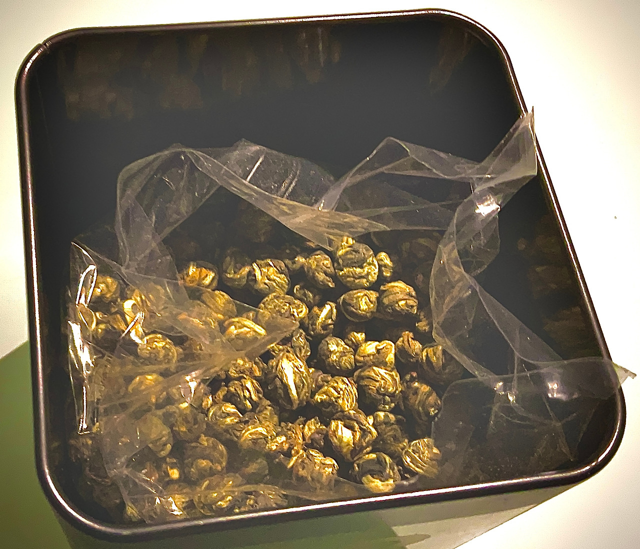모두 수작업으로 만들어지고, 어린 녹차 잎과 신선한 재스민 꽃을 신중히 선택하며, 차 잎은 작은 진주 모양으로 말리는 데 오랜 시간이 소요.