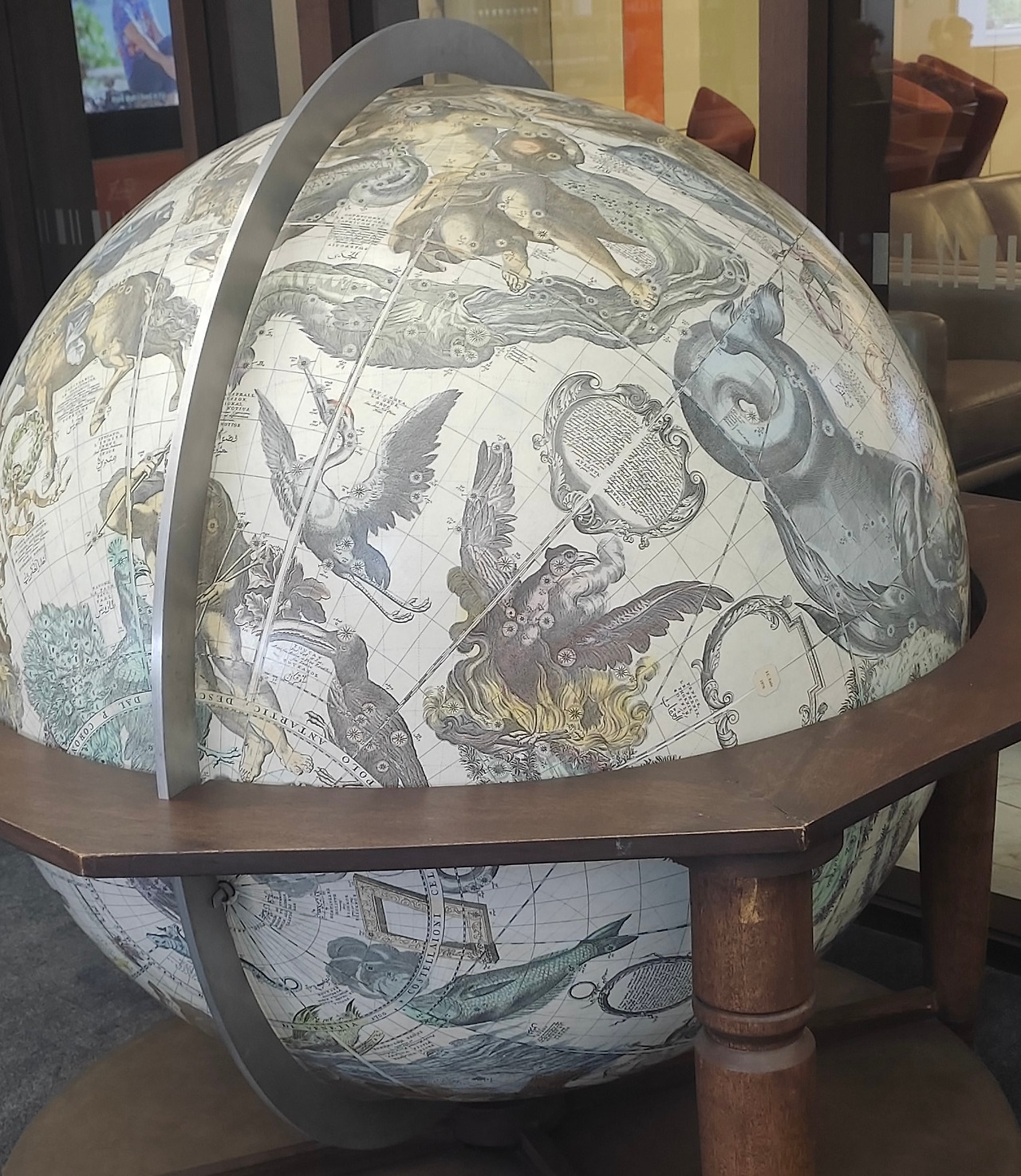 우선 수백 년이나 된 천체도(무수한 별자리가 그려져 있다)와 지구본(한국이 제 맘대로 그려져 있다)이 있고,