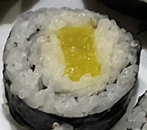 - 노란 무, 우엉, 오이, 당근, 시금치, 어묵을 김 한 장의 1/3 ~ 1/2 사이 정도 채운다.
