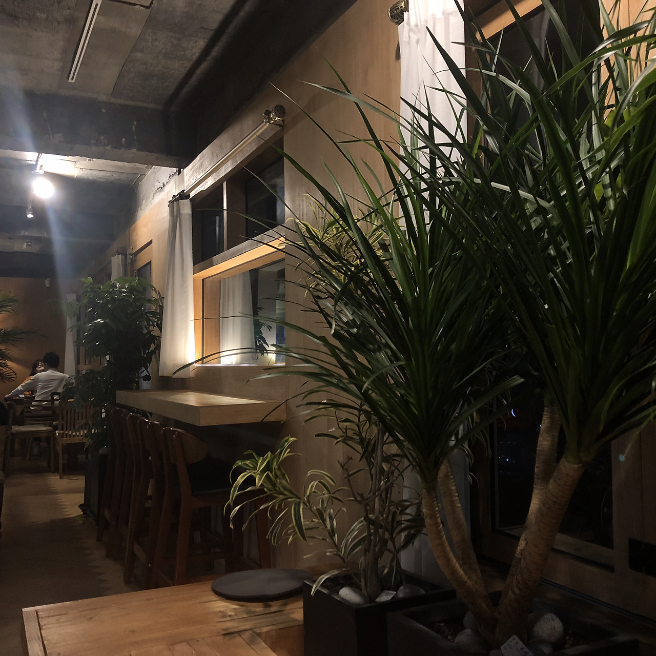 스탭바 전면에 반돌출 간접등과 화분 등을 통한
