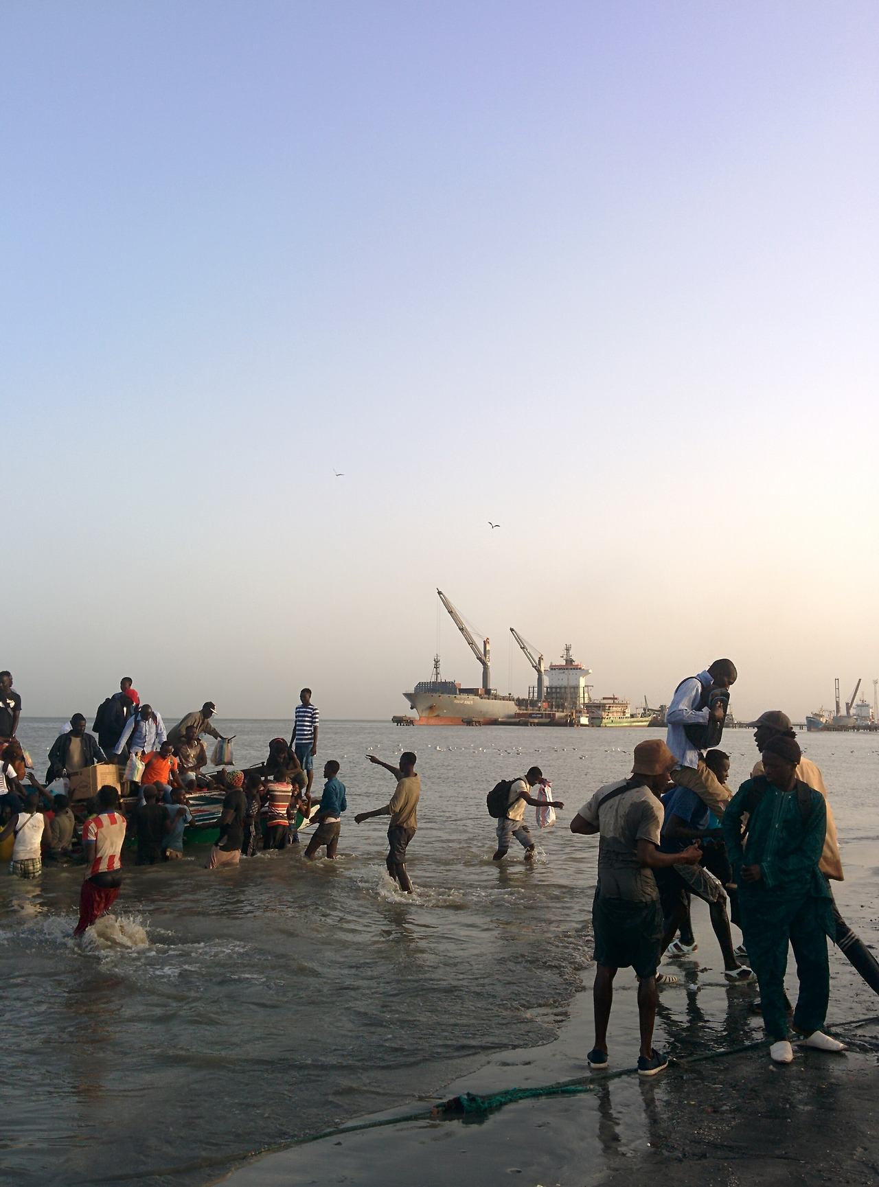 아침이 되어 오가는 사람들로 분주한 반줄 시내를 가로질러 곧장 선착장으로 갔다. 선착장 주변은 이미 배를 타러 온 사람, 마중 나온 사람, 물건 팔러 나온 사람들로 북적북적했다. 나는 좌판에서 비스킷을 한 통 사 가방에 넣고 눈치껏 사람들의 뒤를 따라갔다. 줄을 서고, 여권을 보여주고, 지갑을 열어 죄다 똑같은 얼굴이 그려진 지폐들 사이에서 하늘색과 붉은색 지폐를 각각 한 장씩 골라내어 25달라시(약 500원)를 내고 표를 샀다. 쫓겨난 독재자의 초상은 지폐를 움켜쥔 사람들 손 안에서 여전히 여유롭게 환한 미소를 짓고 있었다.