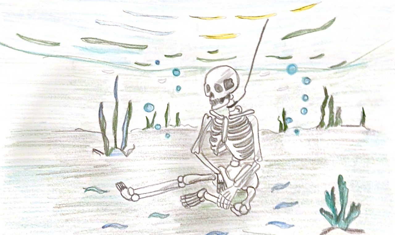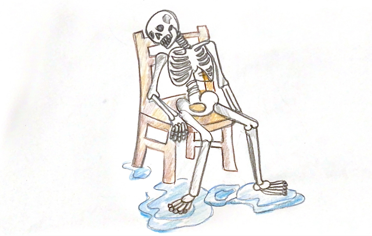 거실 의자에 물에 젖은 해골이 앉아있었다.