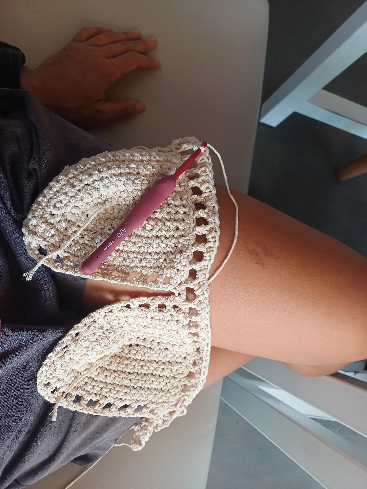 바닷속에 있지 않은 시간에 코바늘을 뜨기 시작했다. 바다 여정을 떠난 지 한 달쯤 되었을 때였다. 손가락과 막대기, 실만 있으면 어디서나 할 수 있다. 인터넷이 있으면 몇 가지 패턴을 금방 익힐 수 있다. 몇 가지 패턴만 가지고도 완성할 수 있는 무료 도안을 얼마든지 찾을 수 있다. 언젠가부턴 도안 없이 만들기도 한다. 수료증 필요 없다고 했는데, 이건 좀 자랑하고 싶다. 코바늘로 뜬 무언가를 손에 쥐었을 때의 만족은 꽤나 순수하다.