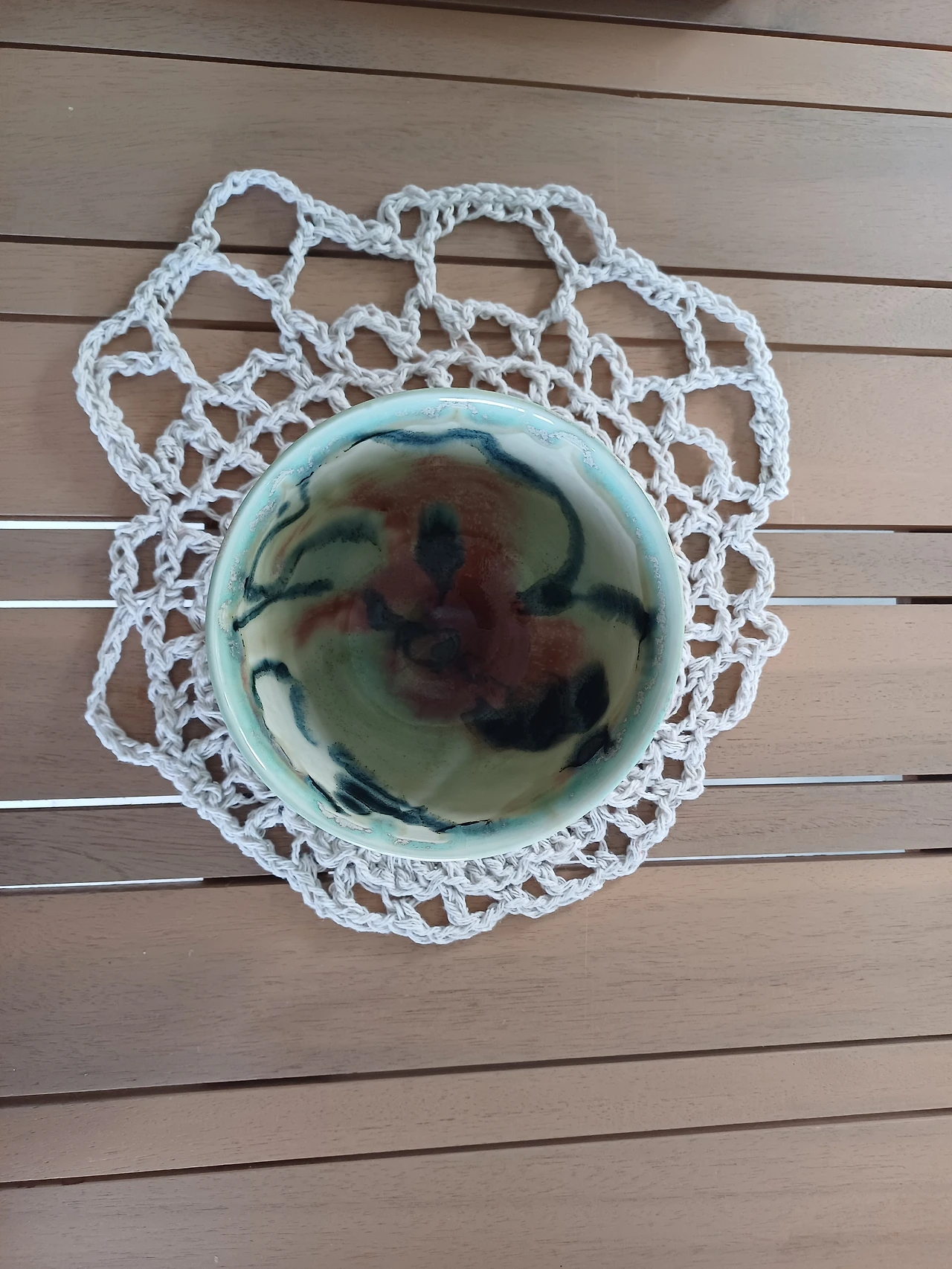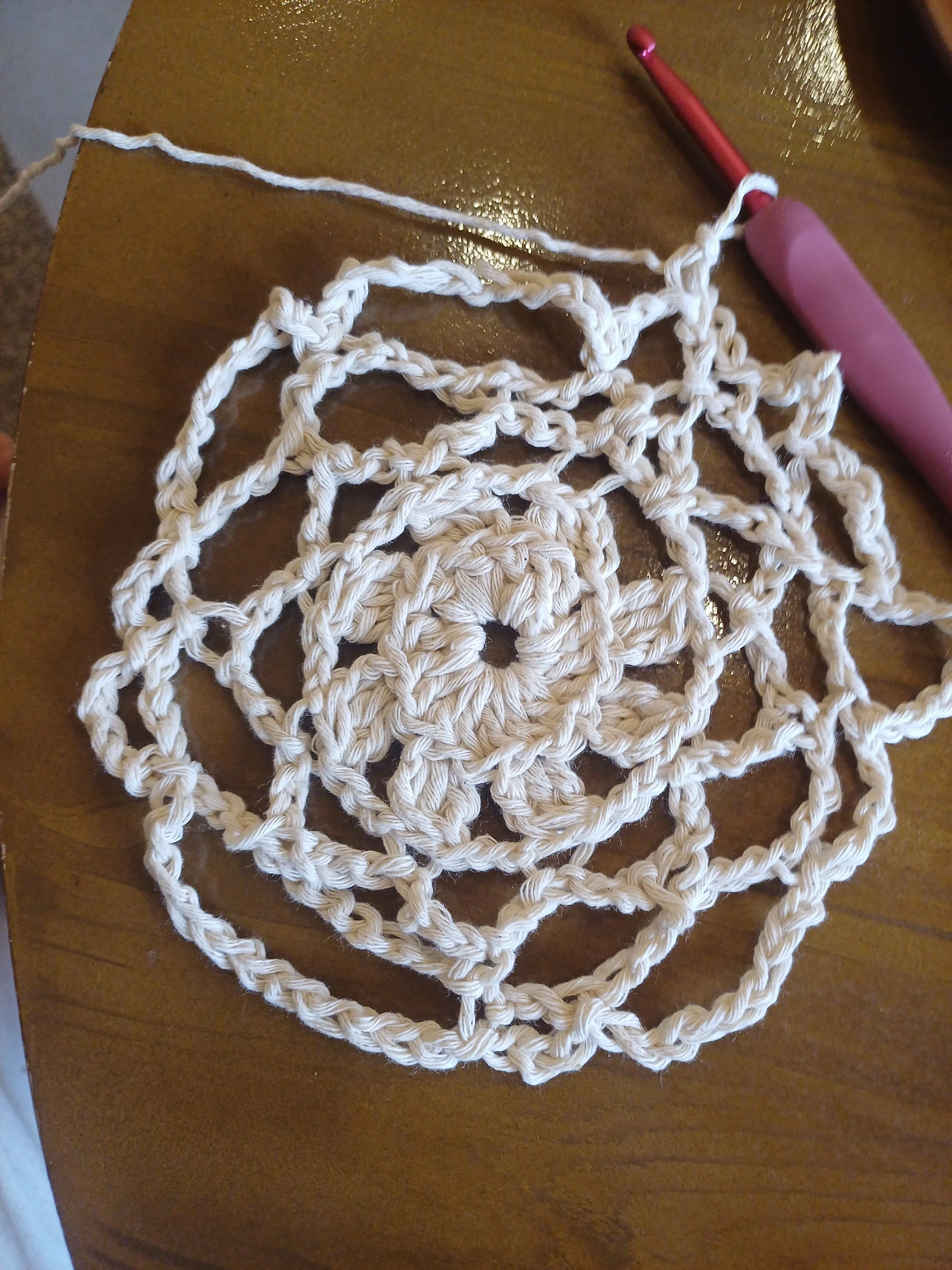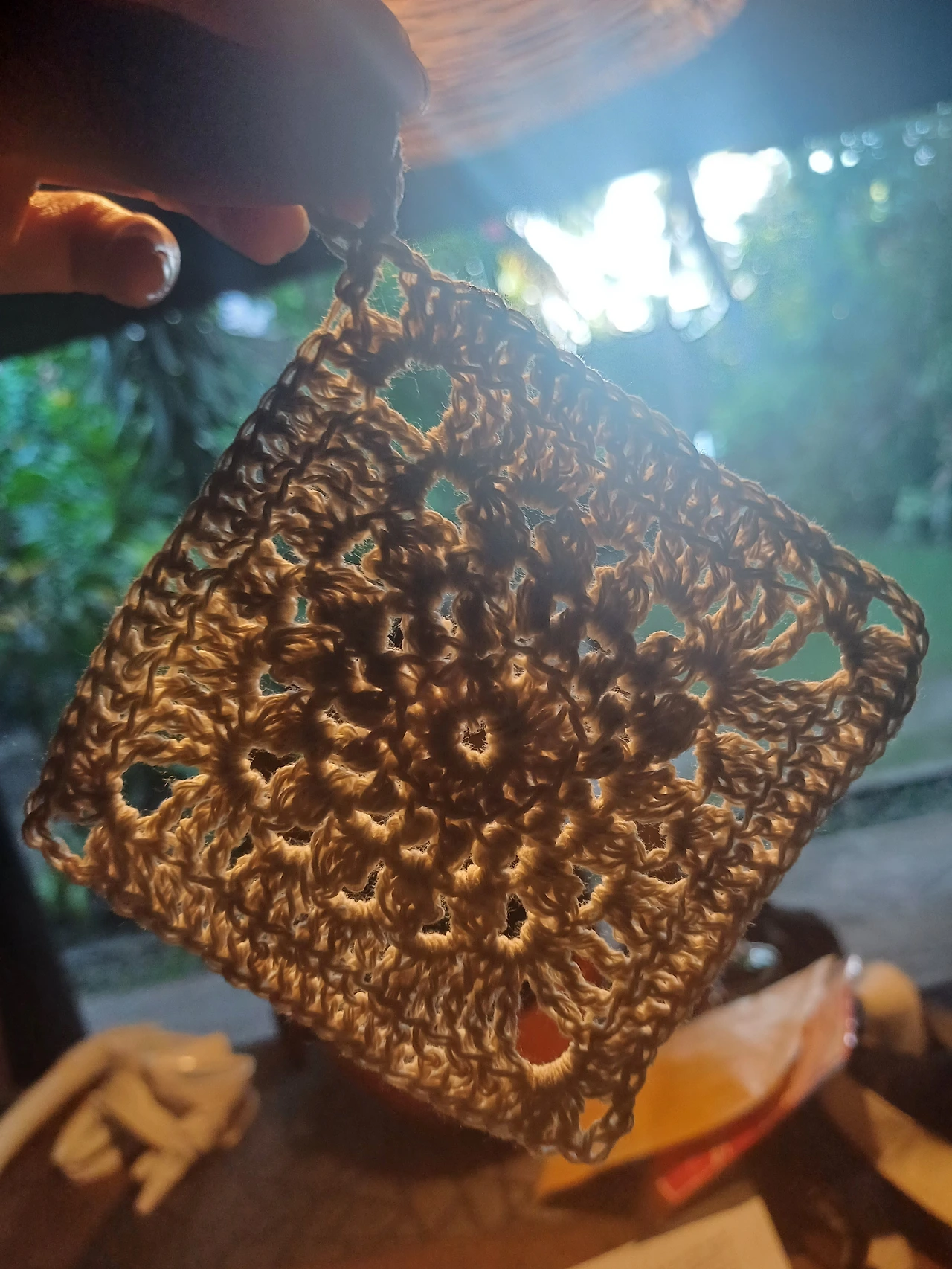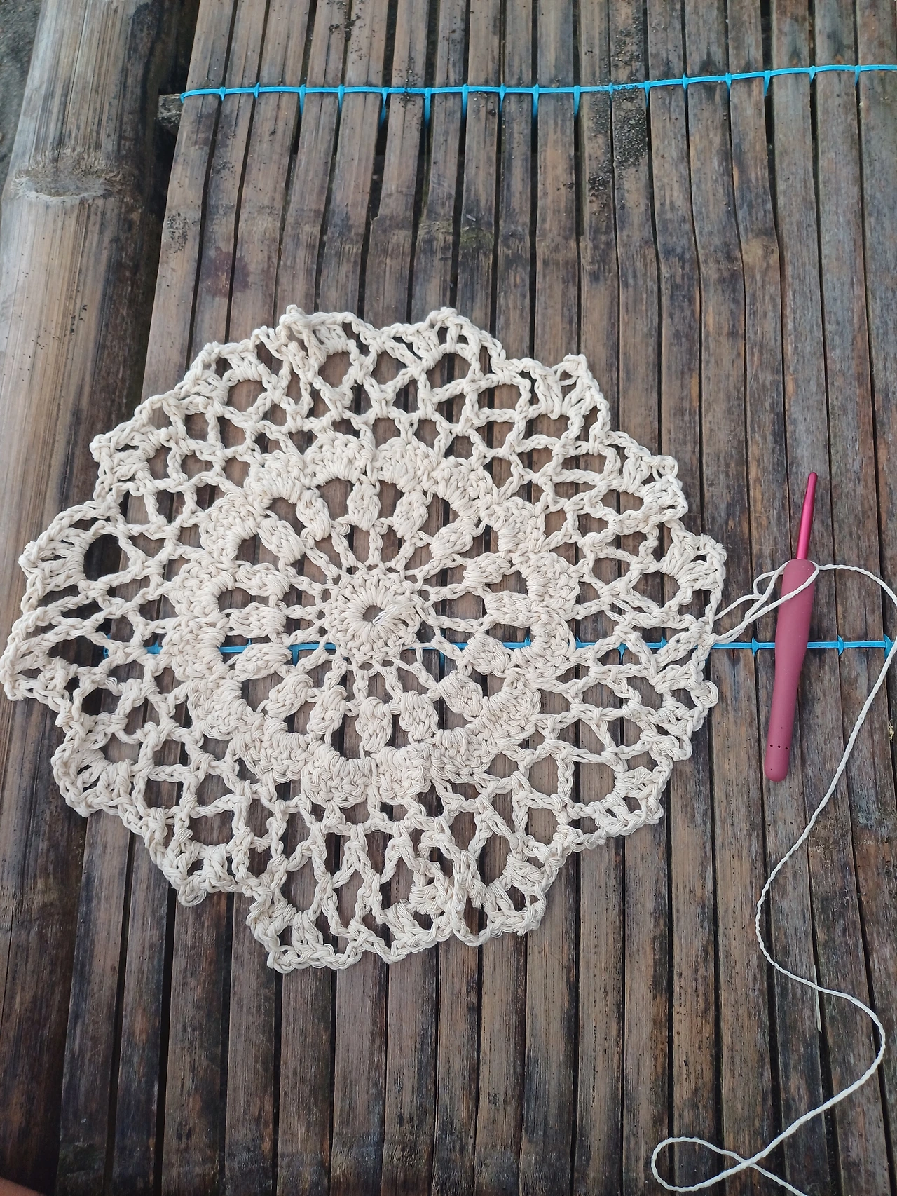 처음 뜬 모티프는 수세미로도, 컵받침으로도 쓸 만한 크기. 내 삶을 친절과 돌봄으로 채워 준 인연들에게 선물했다. 처음 머문 숙소 주인 갈린, 두 번째 숙소 관리인 마리멜과 정원사 피터. 까미긴에서는 늘 가던 밥집 삼춘, 다이빙 버디. 비행기 환승으로 하루를 머문 라로통가에서 우연히 만나 집으로 초대해 주고 잘 곳을 내어준 옥스에게 주려고 새벽에 일어나 후다닥 만든 적도 있다. 진심으로 그 사람이 행복하길 바라는 염원을 담아 만들려 애썼다. 이건 예술작품도 아니고, 소비도 생산도 노동도, 감히 폭력도 아니라고 믿고 싶다. '빈 시간'을 그저 한 땀 한 땀 눈에 보이게 표현한 만다라(mandala)에 가깝다.