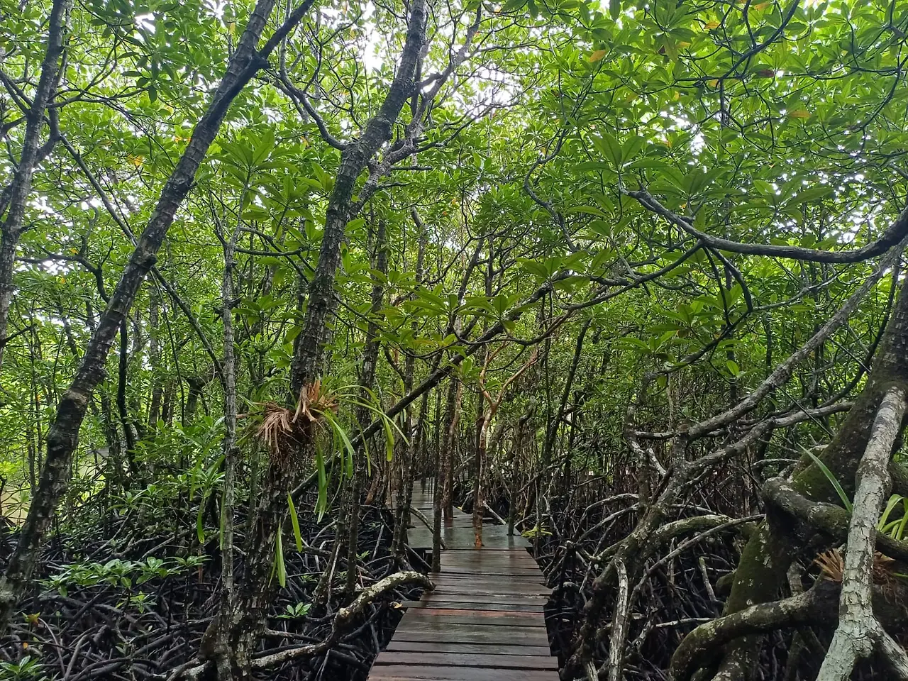 물가에서 좀 더 멀리 검은 망그로브, 흰 망그로브가 산다. 모두 잎의 모양도, 뿌리 모양도, 번식체(propagule)도 다 다르게 생겼다. 흰 망그로브는 과잉 염분을 이파리를 통해 배출해 내느라 잎에 흰 반점이 있고, 뿌리가 우아하게 생겼다. 검은 망그로브(lumnitzera littorea)는 심각한 멸종 위기종이다.