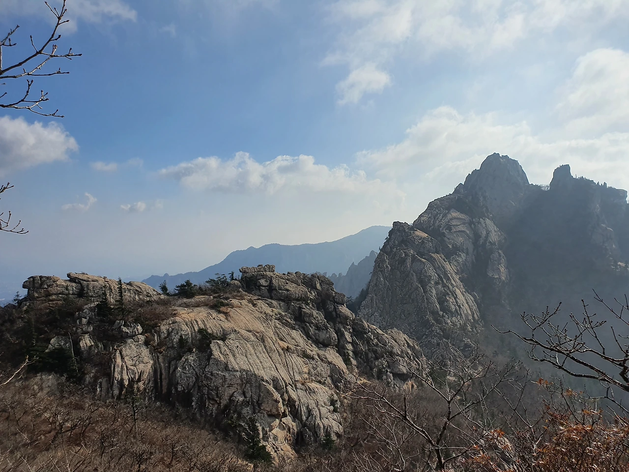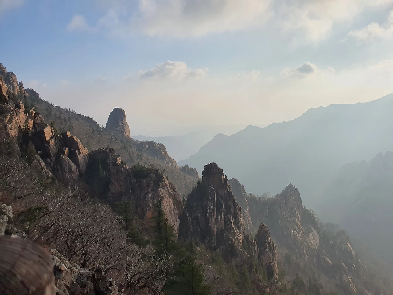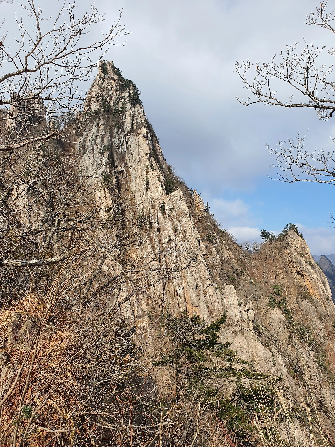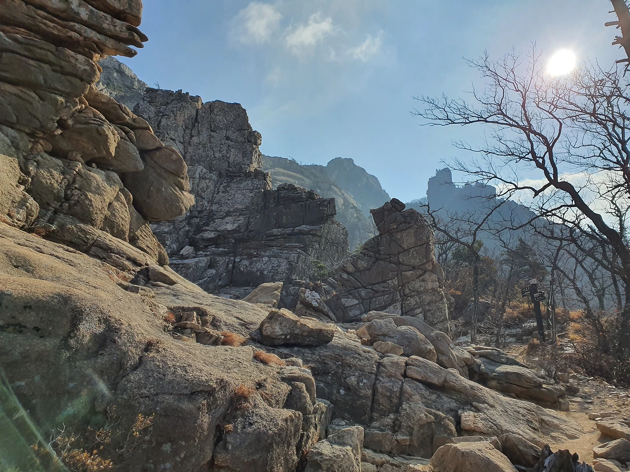 우뚝 서서 자리를 지키고 있는 암석들은 마치 전장의 용사들이 각자의 자리에서 산을 지키고 있는 것처럼 보였다. 돌로 된 갑옷을 입고 칼을 잡고 전방을 주시하며 적이 오면 즉시 달려 나갈 것 같은 자세로 말이다. 보는 이의 시선에 따라 다르겠지만 용감하고 과묵한 장군과 같은 기운이 느껴졌다.