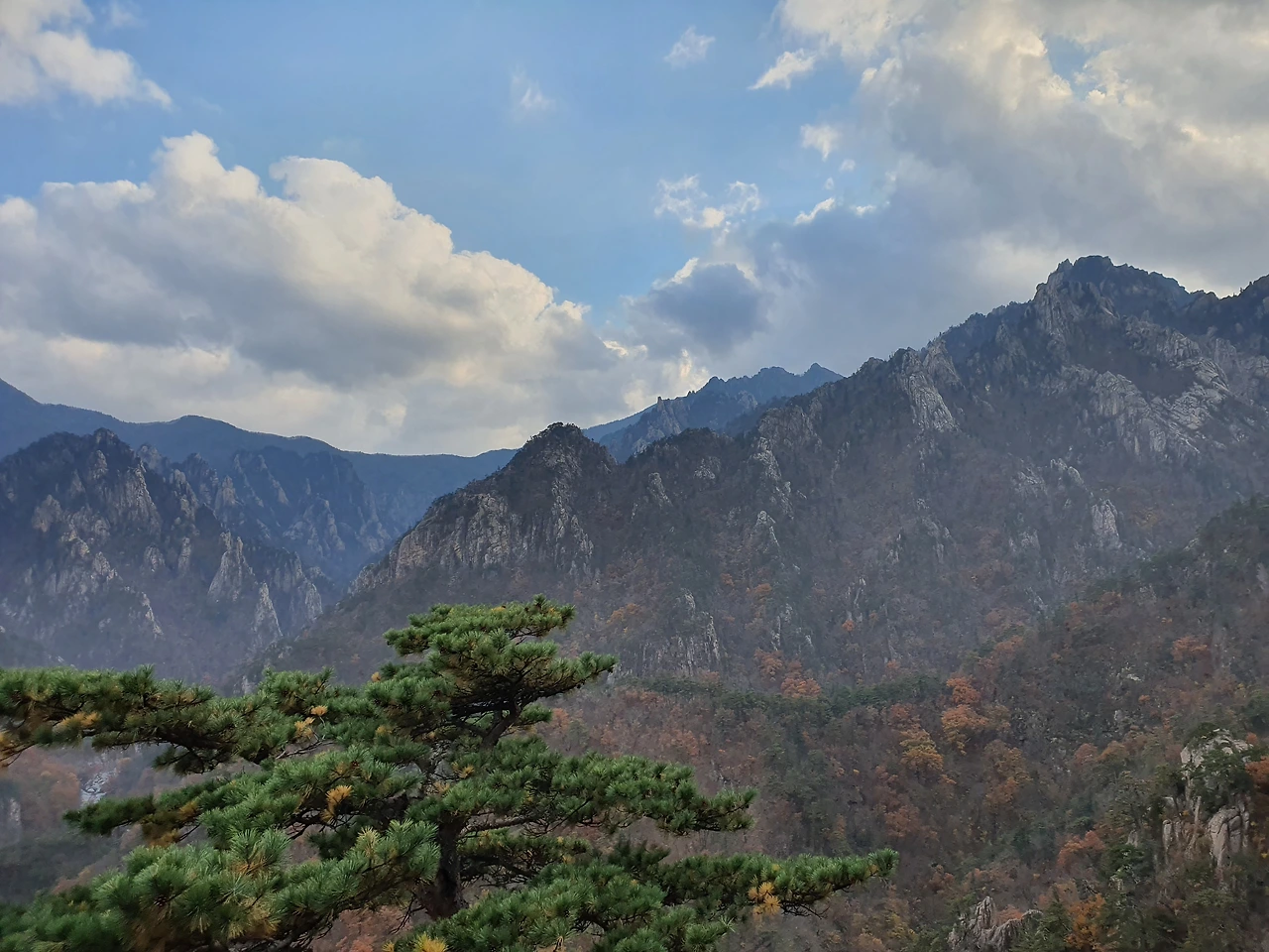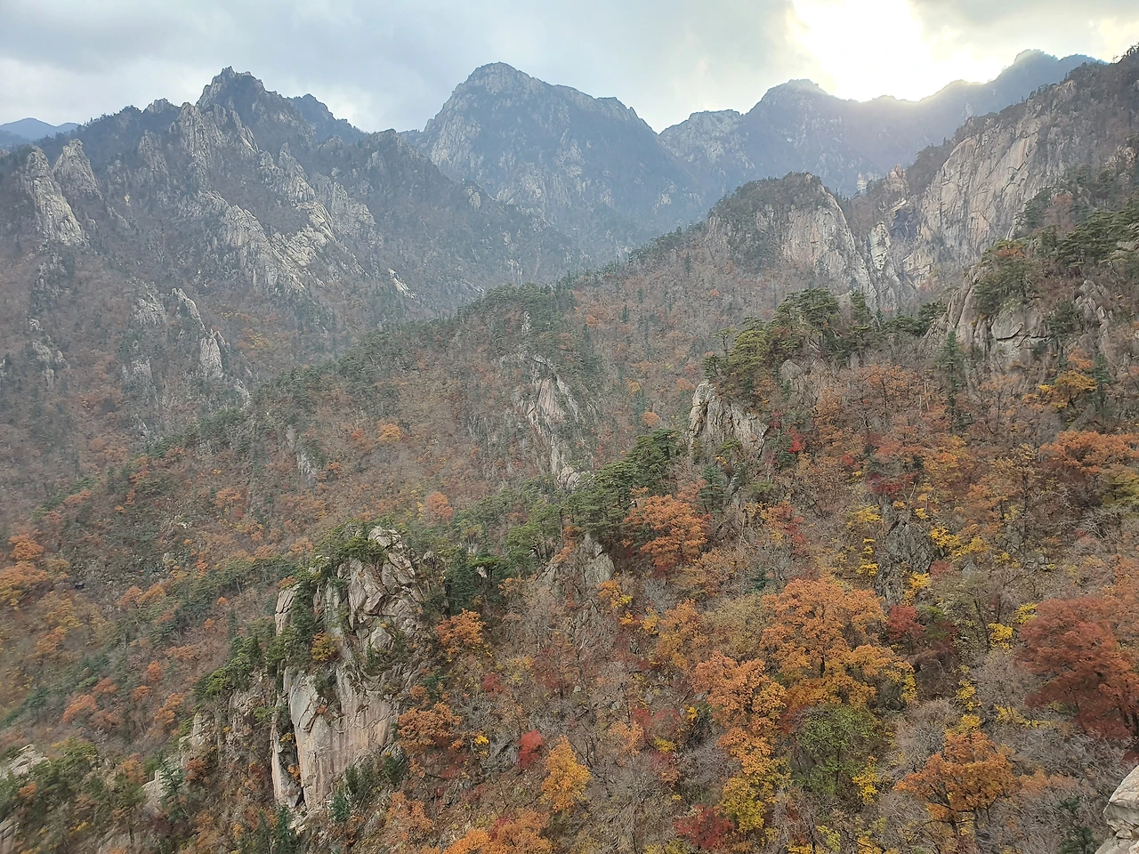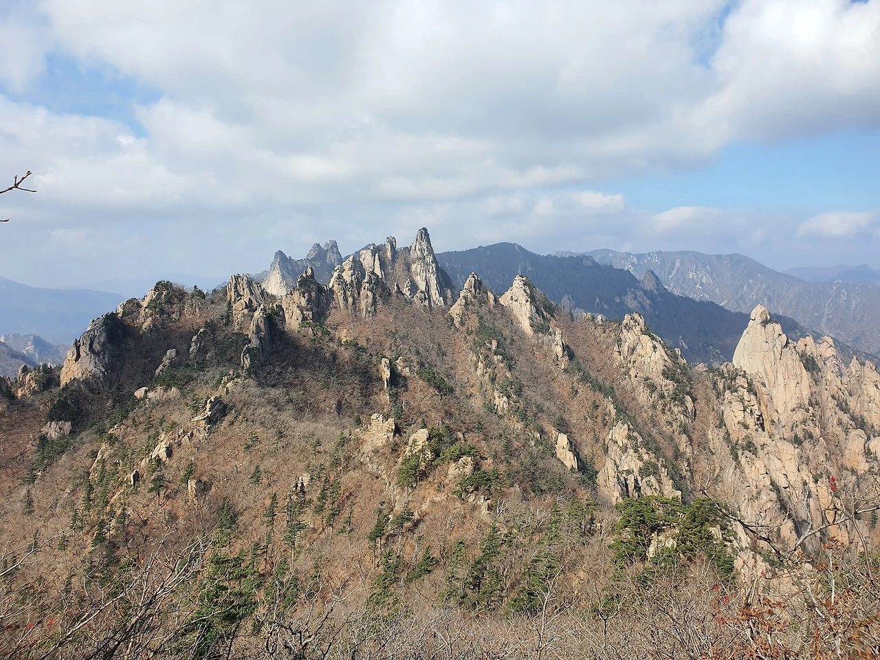 험난한 공룡능선을 오르락내리락하면서 드디어 그 끝에 왔을 때 돌아본 산의 모습이다. 공룡의 등과 같은 모습이라고 해서 공룡능선이라 불린다 했었다. 뾰족뾰족한 모습이 공룡의 등처럼 보이긴 했다. 뿌듯함이 몰려왔다. 잠깐이지만 하산하기 싫고 계속 산을 탔으면 좋겠다고 생각했다.