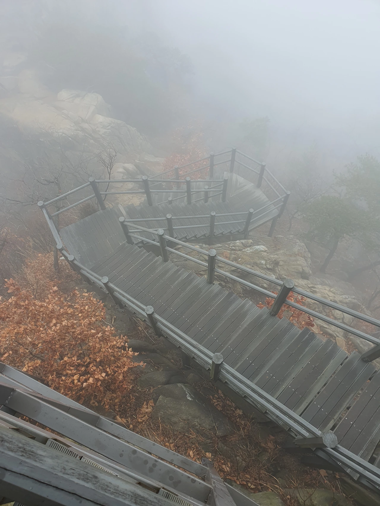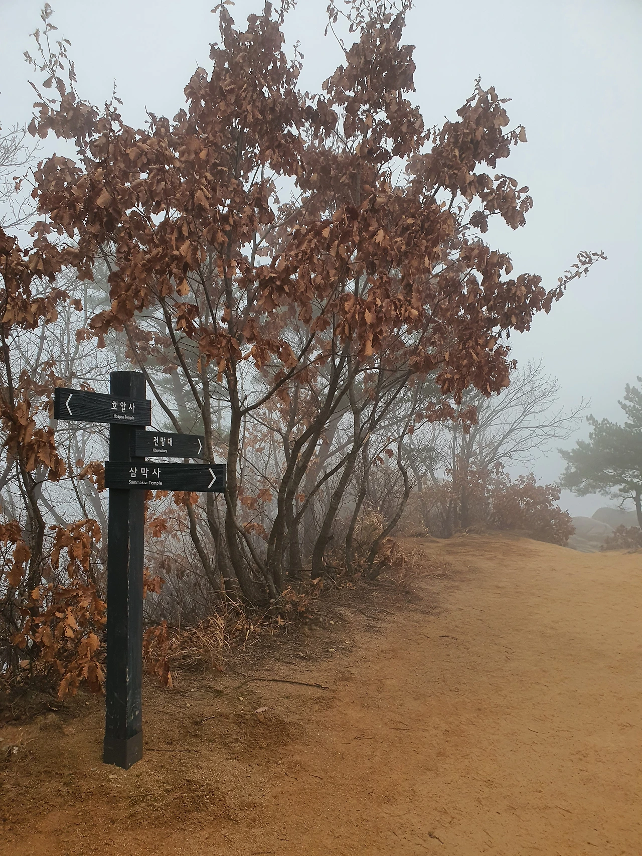 아빠와 만나기로 했던 호압사에서 잠시 쉬었다가 우리는 석수역 방향으로 하산길을 정했다. 걸으면서 산행하며 있던 일들을 두런두런 나누는 엄마 아빠의 뒷모습을 보며 웃음이 났다. 안개 자욱한 산꼭대기가 무섭다며 걱정하던 엄마가 아빠가 호압사에서 만나자고 하는 메시지를 보고 아주 빠르게 하산을 했던 것이 떠오르며 역시 엄마는 아빠에게 많은 의지를 하고 있다는 확신이 들었다. 대화를 하다 보가 버럭 화를 내며 아빠를 이해하지 못하는 엄마와 다툼으로 끝나지만 그래도 다음 날이면 아빠를 위해 따뜻한 식사를 준비하는 엄마의 마음은 요식행위가 아니었다는 생각이 들었다.