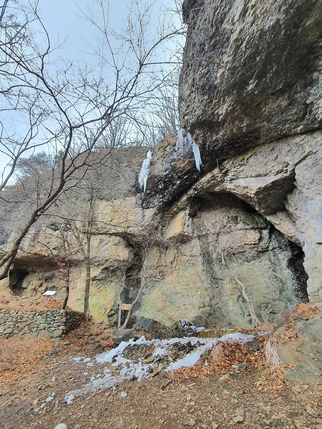 김생굴이곳은 김생이 글공부를 하고 과거급제를 하였다는 이야기가 전해지고 있는 장소이다. 사진 왼쪽의 굴은 직접 사람이 들어가 아늑하게 몸을 숨길 수 있을 정도로 깊다. 그곳에 집을 짓고 살았던 것으로 추정된다. 바닥을 자세히 보면 깨진 기와들이 흩어져 있다. 김생이 떠나고 나서 관리가 되지 않아 시간에 의해 허물어진 것이 아닐까 싶다. 산에 청명한 정기가 흘러서인가, 옛 선비들이 공부를 하고 마음 수련을 했다는 이야기들이 곳곳에 놓여 있다. 사진을 찍는 동안에도 얼음이 녹는 소리가 쩌렁쩌렁하게 들렸다. 밤새 영하의 기온으로 냉기가 서렸다가 아침에 기온이 풀리면서 돌과 함께 얼었던 얼음이 녹으면서 갈라지는 소리가 동굴을 울리는 듯했다. 지금이라도 다시 섯가래를 세우고 집을 지어도 손색이 없을 것 같은 명당이란 생각이 들었다.