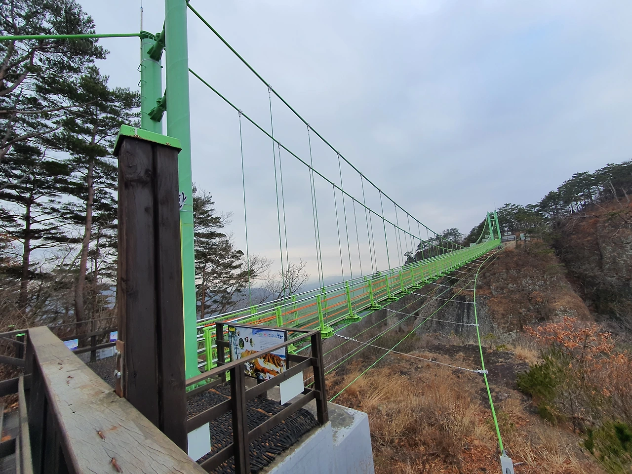 하늘다리추석에 가족들과 왔을 때는 하늘다리에 도착했을 때쯤엔 기진맥진했던 것 같은데 오늘은 가뿐하다. 바람소리가 귓불을 스치며 공포감을 줄 정도였는데도 마냥 신났다. 천천히 걸으면 오히려 흔들림이 크게 느껴져서 공포심이 커지기 때문에 빠른 걸음으로 앞을 보며 마구 걸었다. 하늘다리 끝에 도착할 때쯤엔 한번 더 건너볼까 싶을 정도로 재미있었다. 하지만 다시 돌아올 길이기에 그냥 간다.