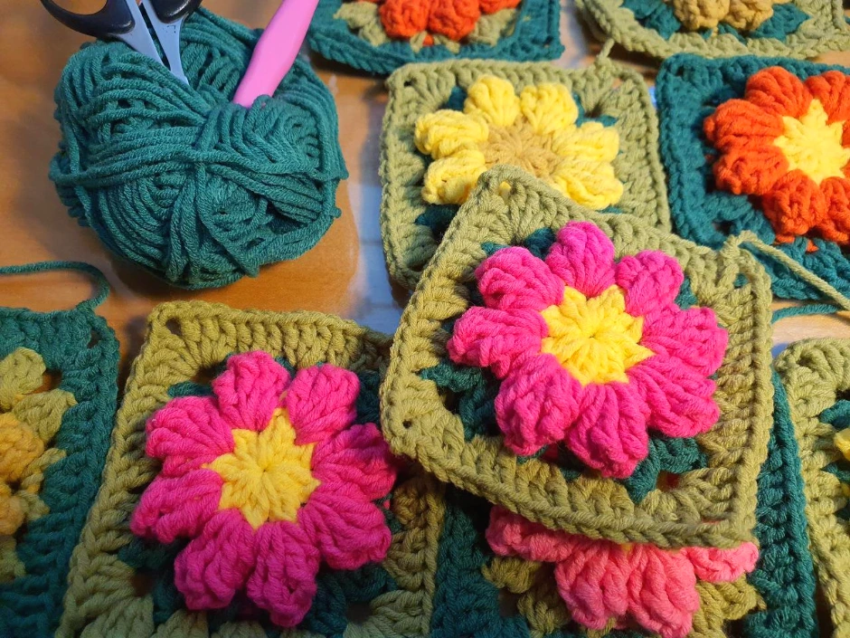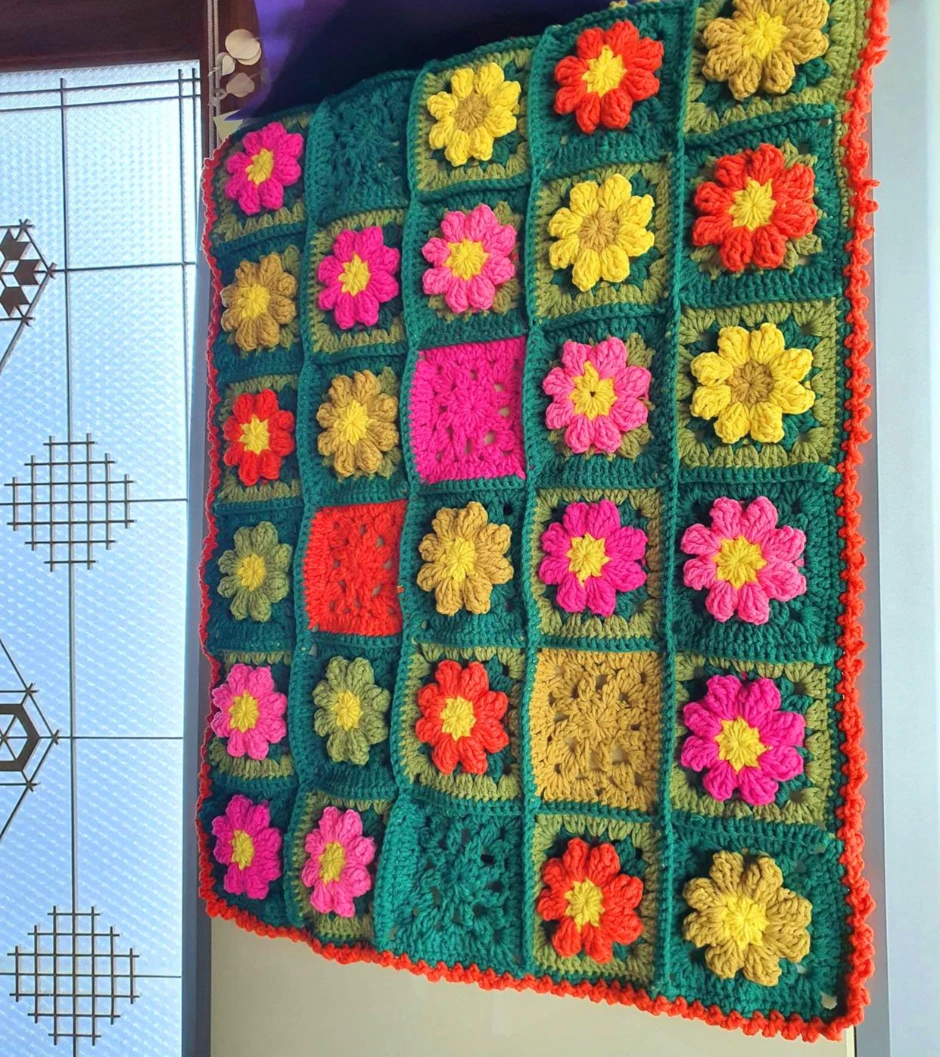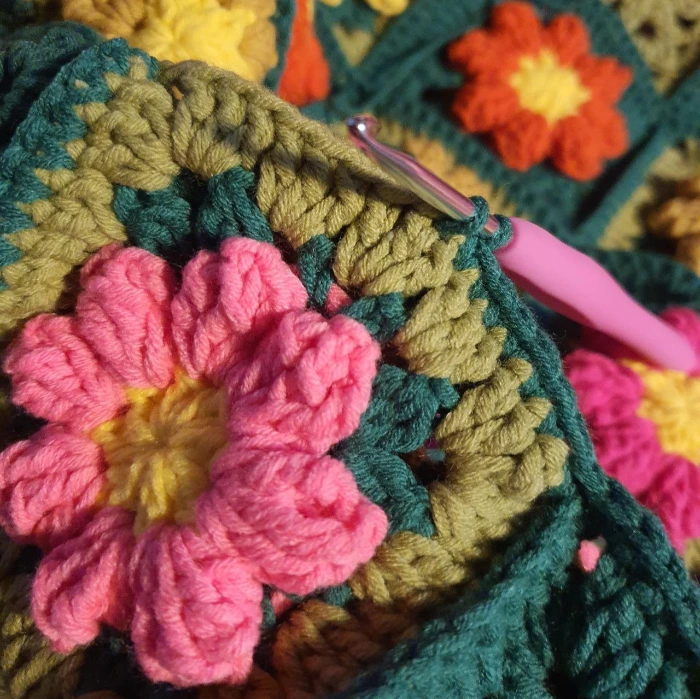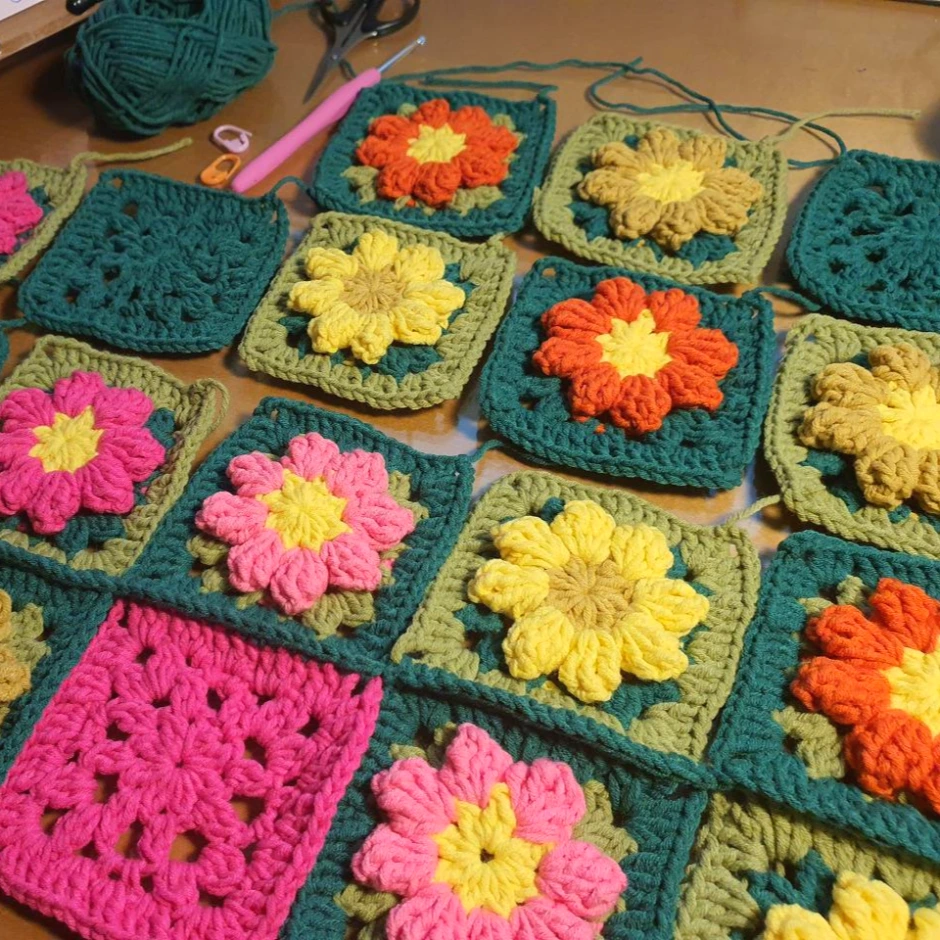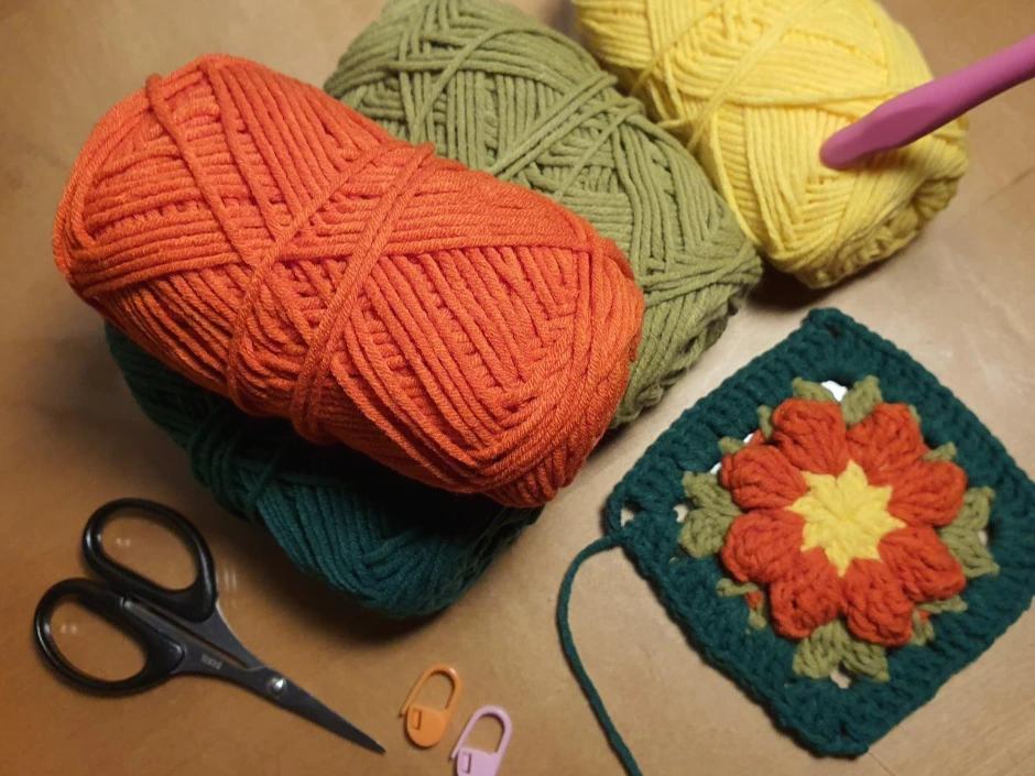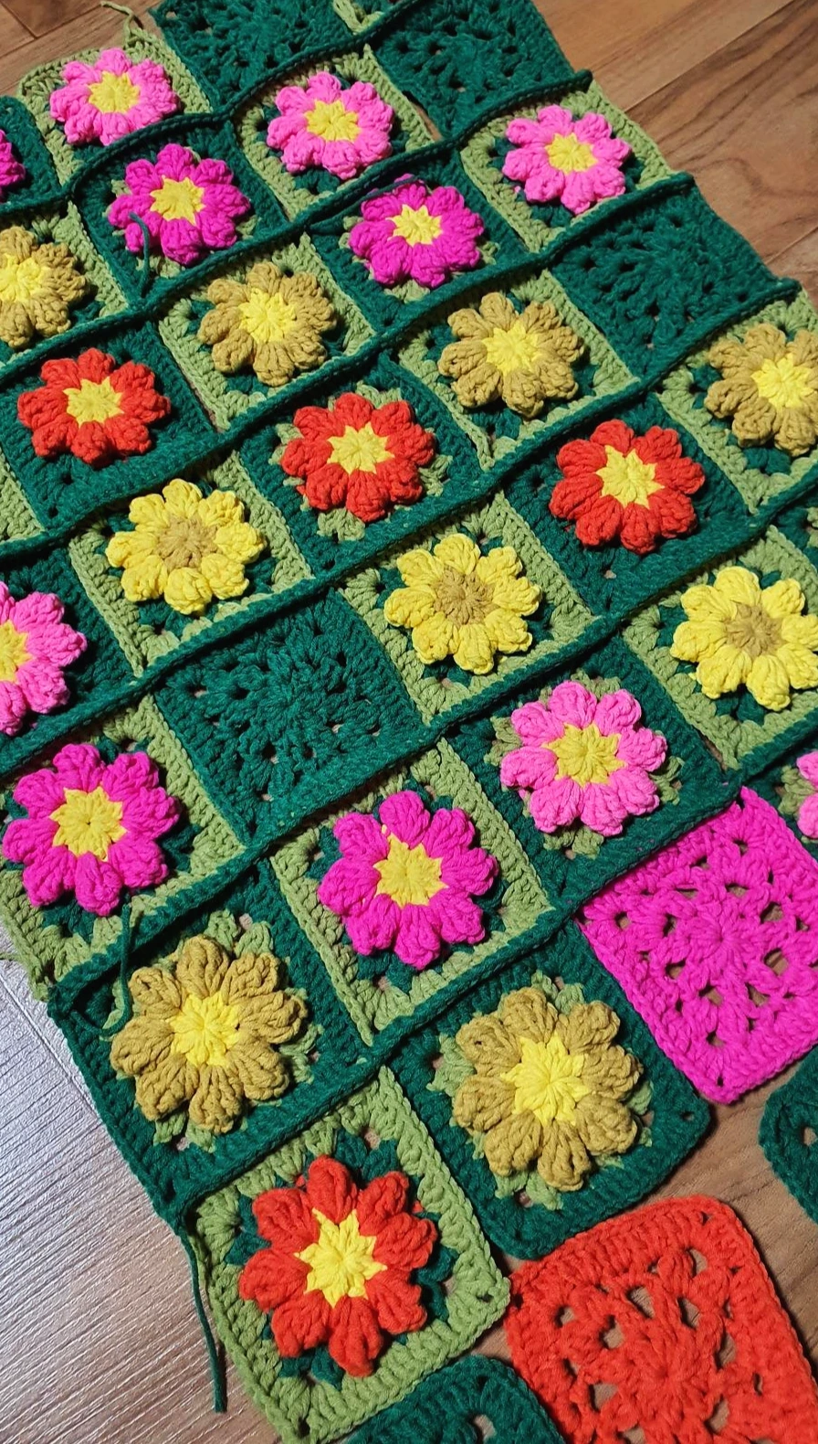 다. 수 십개의 모티브를 연결해야 하나의 작품이 완성될 수 있기 때문에 손이 놀고 있는 시간에는 무의식적으로 실과 코바늘을 잡았다. 손뜨개로 유명한 유투버의 영상을 한 번 보고 색감은 내가 원하는 것으로 변경했다. 머릿속으로 상상은 했지만 실물로 본 것은 없었기 때문에 꽃잎과 바탕색의 어울림을 시험해 보아야 했다. 그래서 마음이 급해졌다.