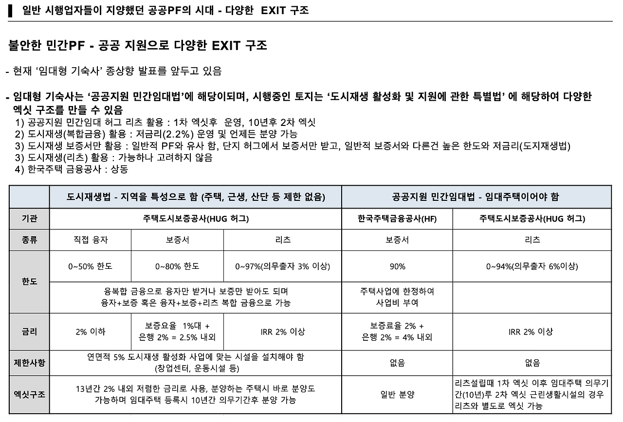 1월 10일 발표한 내용들이 1~4월중(입법, 내부규정, 실행)등으로 되어있는데 모두 실행이 된다면 부동산'폭락'이나 태영건설 부도같은 일들이 대폭 줄어들것 같습니다. 사실 그전부터 저는 위 내용이 아니더라도 '공공 피에프의 시대'가 오고 있으며, 과거 여러차례 긴축재정과 양적완화를 걷으며 많은 투자자들과 자산가들이 학습되어왔고, 자본주의의 필수요소인 인플레이션과 자산 우상향이 되어야지만 유지되기에 리먼사태나, 아이엠에프같은 폭락은 없을 거라고 생각해왔습니다. (지방은 다름)