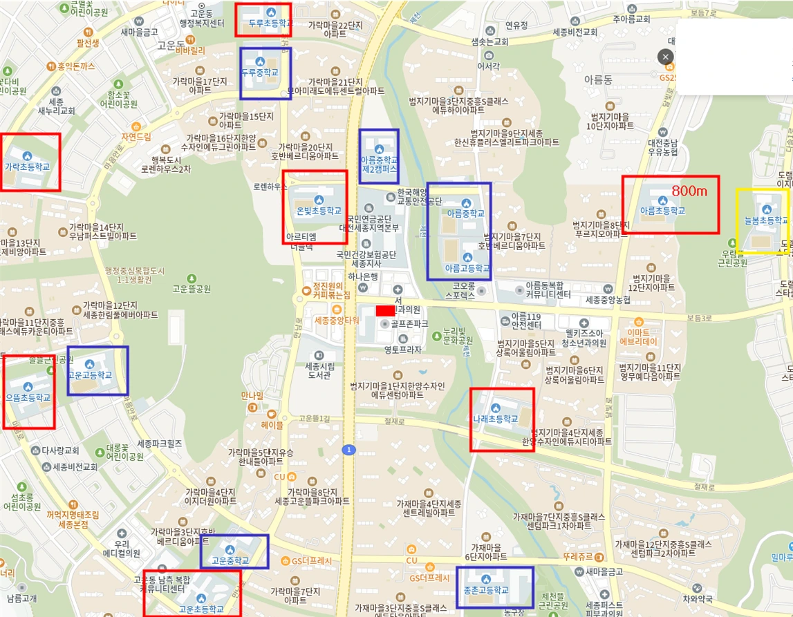고운초등학교 1078명 / 나래초등학교 998명 (인접) / 아름초등학교 1018명 /늘봄초등학교 463명 (1키로)