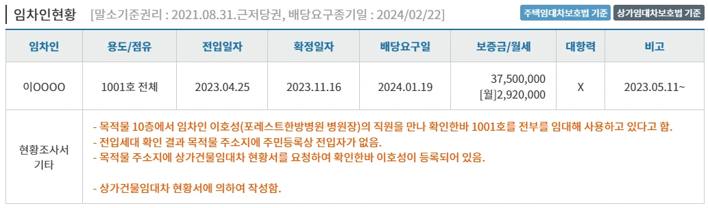 현재 이곳은 대항력이 있는 임차인이 오래전부터 사용을 해왔고 2026년인 2년뒤 까지는 임대사업을 유지하며, 2년뒤 사업을 영위 하는게 좋을것 같다고 판단 됩니다.