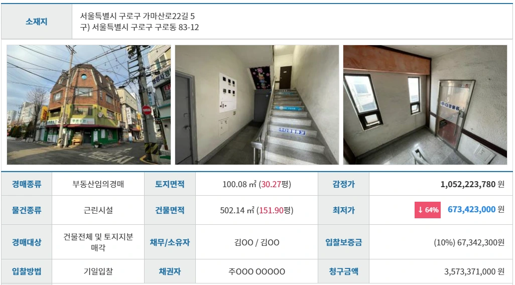 * 경매물건을 가져오는건 확정된 임차인-임대인 정보와 매매가격을 알수있기에 예시를 든것뿐 일반적 매매에서도 충분히 좋은 곳을 부동산을 매입하여 사업을 영위 할 수 있습니다. 아래 예시로 드는 부동산들은 1달정도의 짧은 시간에 금액/용도별로 괜찮은 물건을 추렸는데- 사업을 준비하는6개월~1년간 일반매매나 경매등의 자주 보신다면 훨씬 더 원하는 좋은 부동산을 소유 하실수 있을 것 입니다.