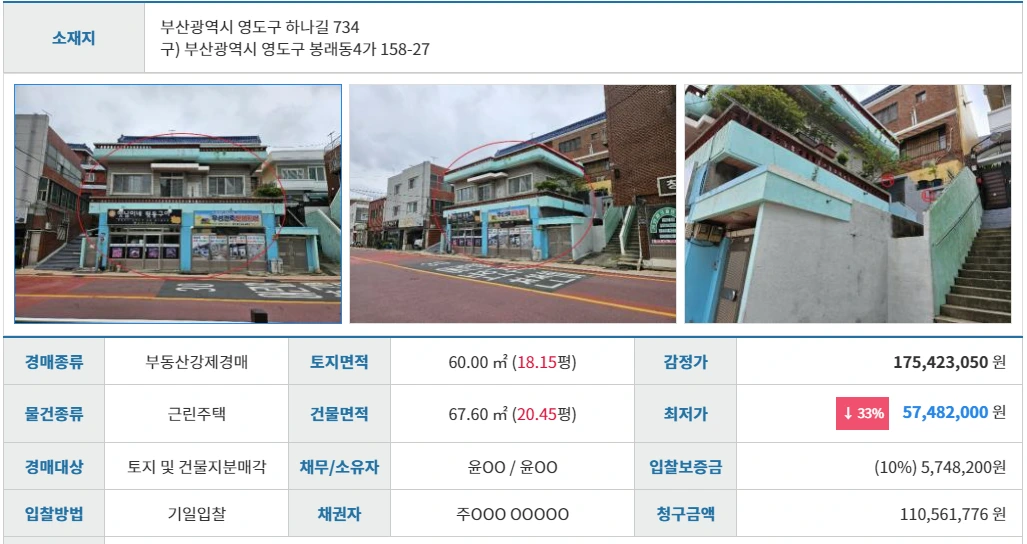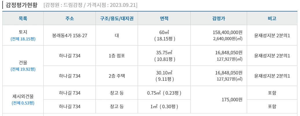 3. 근린주택 토지소유 100%의 1/2지분 소유- / 토지 면적 18.15평 / 2층 건물