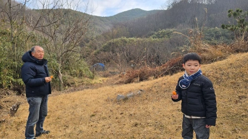 아이들은 이른 봄같은 햇볕아래서 시골을 만끽할 수 있었다.