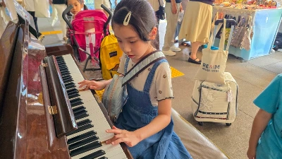 플리마켓 한편에는 업라이트 피아노가 있었는데 누구나 연주할 수 있도록 비치해 둔 것이었다. 마침 6~7살 정도 되는 아이가 연주 중이라 더욱 눈길을 끌었다. 노천 피아노에서 연주를 하다니 얼마나 멋진 일인가. 피아노를 배우고 있는 딸에게 슬쩍 연주를 권해 보았다.