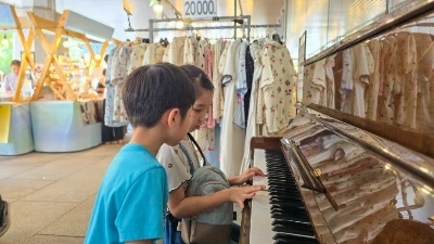오가는 사람이 많아 나서지 않을거라 생각했는데 아이는 선뜻 피아노로 다가섰다. 동생의 연주가 끝나고 피아노 앞에 앉은 딸은 능숙하게 연주를 시작했다.